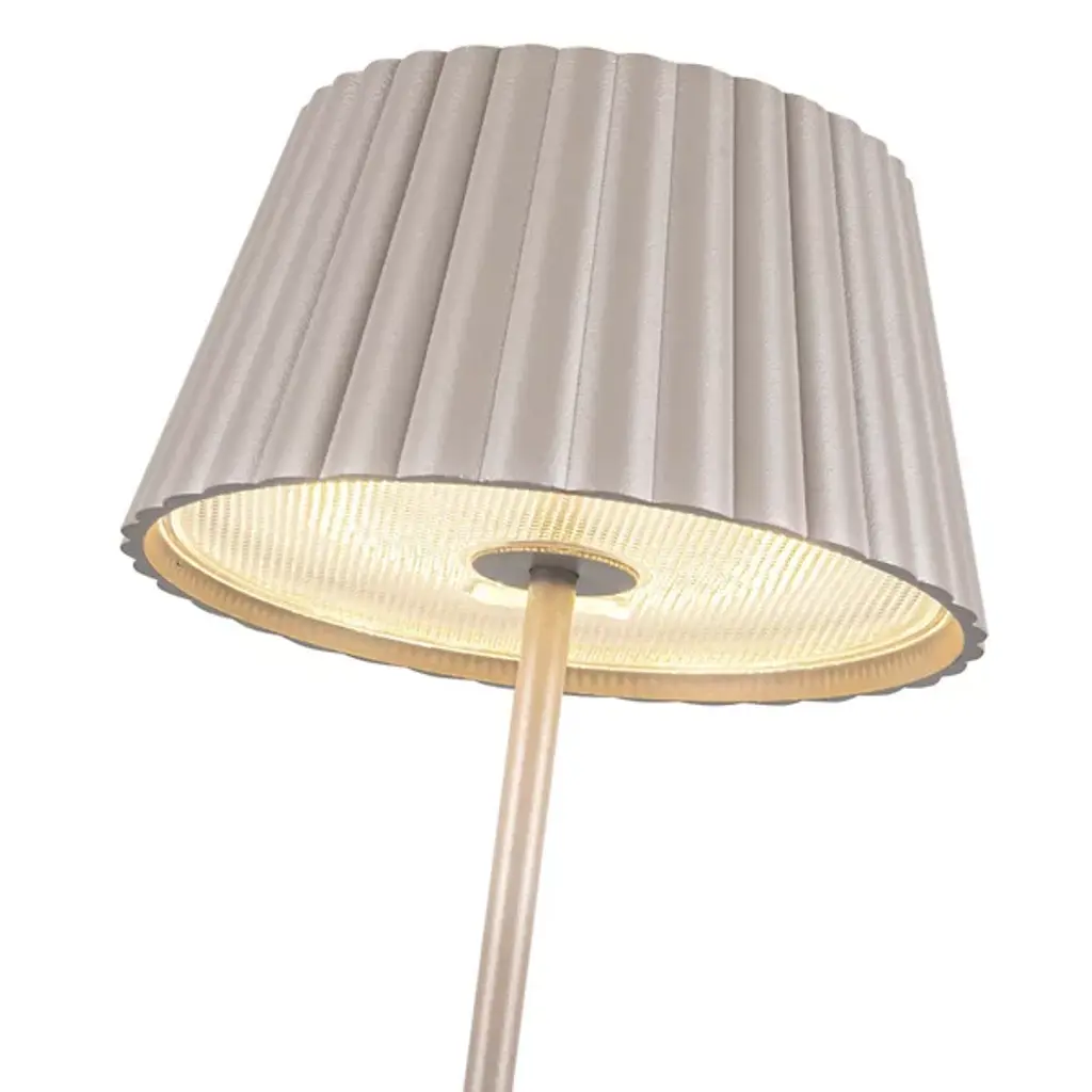 The Dario LED Table Lamp from Kuzco Lighting combines sleek modern design with convenience, featuring a stylish pleated metal shade and an intuitive hold-to-dim function for effortless control. This rechargeable LED table lamp offers customizable ambiance at your fingertips, allowing you to adjust the brightness to match any mood or setting. Whether used for task lighting or to create a cozy atmosphere, its design and practical features make it a versatile addition to any space.