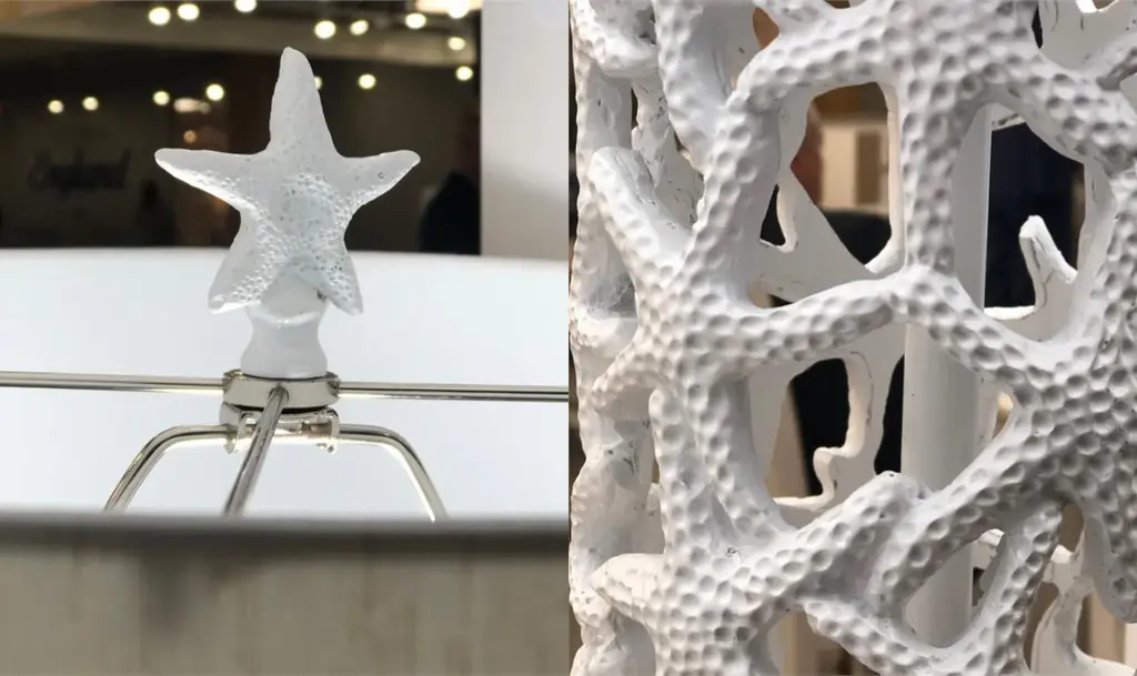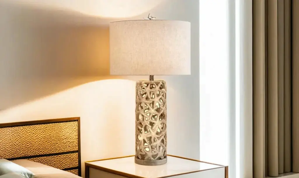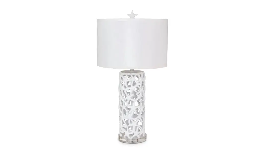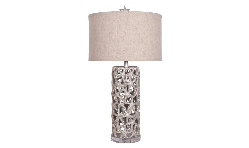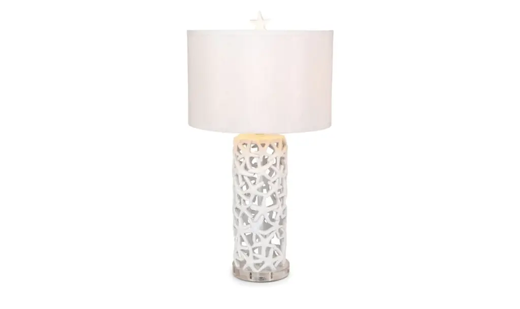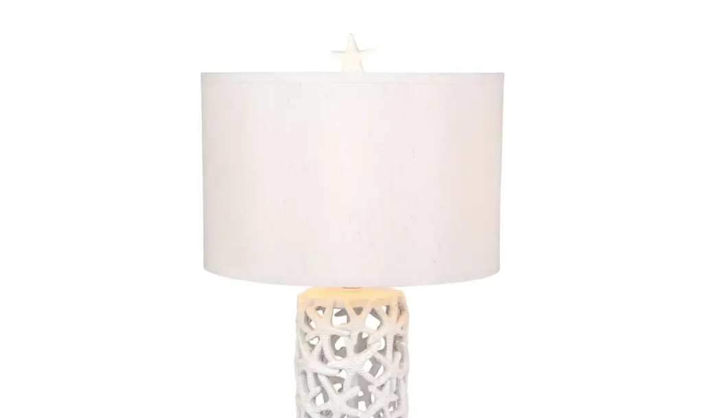 This 30-inch Aloha elegant starfish white table lamp is made from a white poly base, and the star-shaped design easily reminds us of seashore adventures and the beauty of the ocean.It's topped with a linen hardback shade that has some clean lines and a natural look. This shade diffuses light softly, creating a warm and inviting ambiance. Since it comes with a 3-way switch, you won't have trouble adjusting the lighting. Whether you need soft ambient lighting or brighter illumination as needed, overall, this light lamp brings a sense of peace and relaxation to the home. You can grab this set for your beach house, seaside retreats, or any space where you prefer to add a coastal touch.