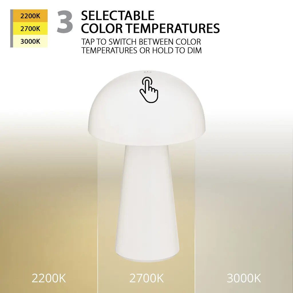 Introducing our new indoor/outdoor table lamps to complement our expanding line of lighting fixtures. Perfect for design continuity both inside and out, enhance the atmosphere throughout your home with Rechargeable Battery-operated portables. Four stylish designs are available in a variety of colorful hues, including green, white, black, and bronze. Conical-shaped shades and sleek bases ensure a clean display with a tasteful layer of light on a patio table or around a hot tub. The stunning portables are ideal for optimal ambient illumination in outdoor homes and hospitality locations.