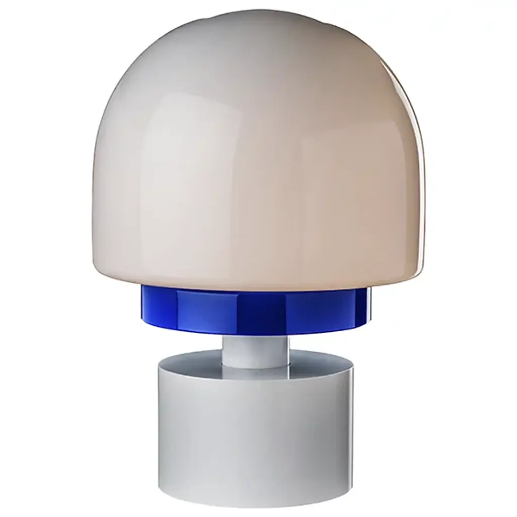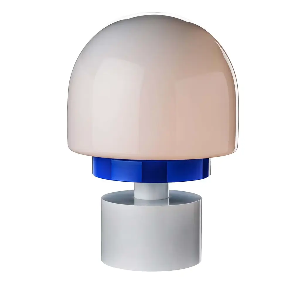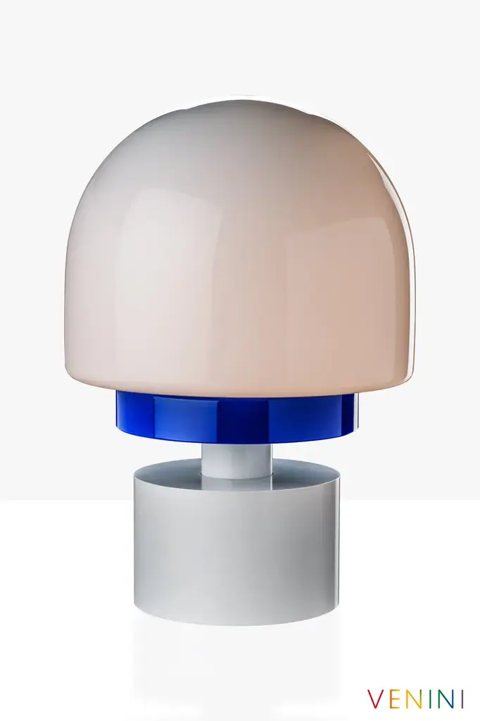 Darpanah is a table lamp made of mixed technique blown glass with a white painted metal base. Appealing in shape and glow, it is tinged with a hint of Sapphire and Pink. Darpanah fascinates the viewer. Its powerful aesthetics urged Ettore Sottsass to turn to Sanskrit for inspiration. Its name reflects its spirit: wonderful. Darpanah is available in a numbered edition table lamp version.“When we imagine glass objects, we feel very special emotions: we imagine light and colours that we cannot touch. Then, suddenly, there is light and there are colours, yet we still cannot touch them. They remain weightless, without temperature, living only in our imagination. All this produces very special emotions.”(Ettore Sottsass)Colors:Milk-white / Sapphire / RedLight source:1 x max 12W LED E27 - DimmerableNumbered Edition
