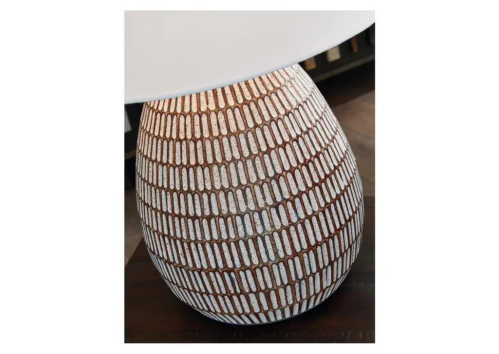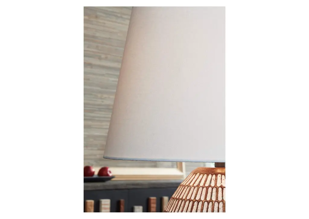Shine a casual light on your good taste with the Darrich table lamp. A distressed beige and white finish on its metal base adds a laid-back simplicity to your existing decor. What an illuminating way to spruce up your space. Weight 12.000 lbs. (5.4kgs.)