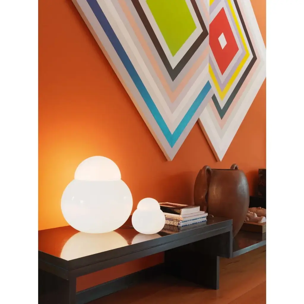 Daruma is a cheerful, simplistic and elegant table lamp designed by Sergio Asti for FontanaArte in 1968. Instead of a separate base and shade, Daruma consists of two glass domes attached together – white glass diffuses soft light throughout the entire light fixture. On show at New York’s MoMA, Daruma is a true gem of Italian lighting design of the 1960s, and its distinctive character makes a lovable addition to modern interiors as well.
