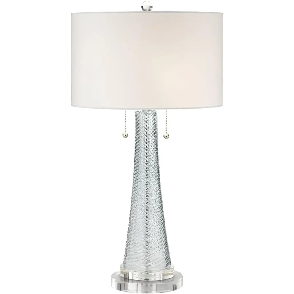 Capture a look of elegance in your home by decorating your space with this classic glass table lamp. This piece is a stunning contemporary piece that stands out in any room. This piece is carefully designed from glass, steel, and crystal to bring you a look that is undeniably brilliant.Features - Due to the production process, each piece is unique and no two are exactly alike.Designed from glass, steel, and crystal this piece is sure to turn heads. Display this stunning lamp in your home to capture a glamourous look in your space.The overall height of this lamp is 38.75", making this piece stand out in any room.Number of Bulbs: 2Wattage: 60WBulb Type: Incandescent, Fluorescent, or Equivalent.Bulb(s) not includedDue to lighting and monitor differences, actual colors and finishes may vary slightly from what appears online.