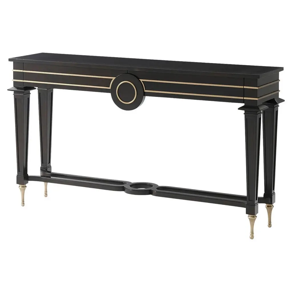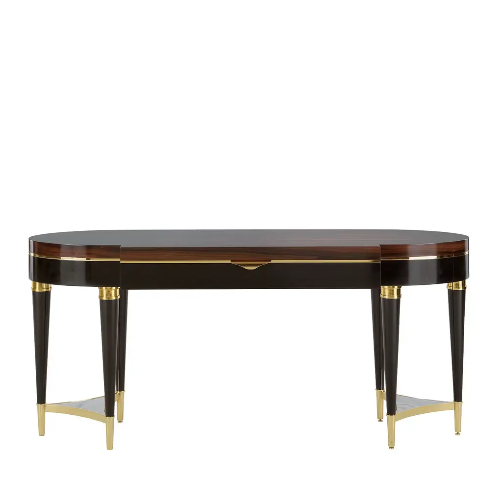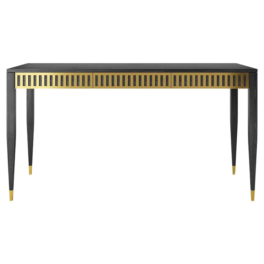 A cabinetmaking gem celebrating Deco style and its luxurious details, this side table makes for an enthralling addition to '20s-inspired interiors. Satin golden details add accents of brightness to the structure, rigorous in its profiles as it results in neat contrast between maple and blackened wood. Ideal as a base for a vase or table lamp, it belongs to the Double Wood Collection.