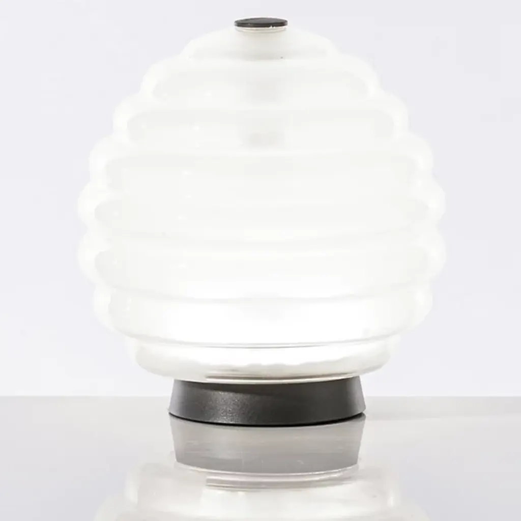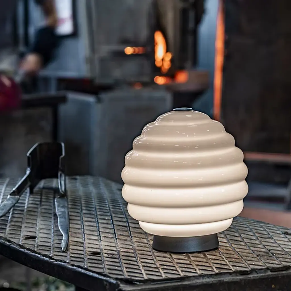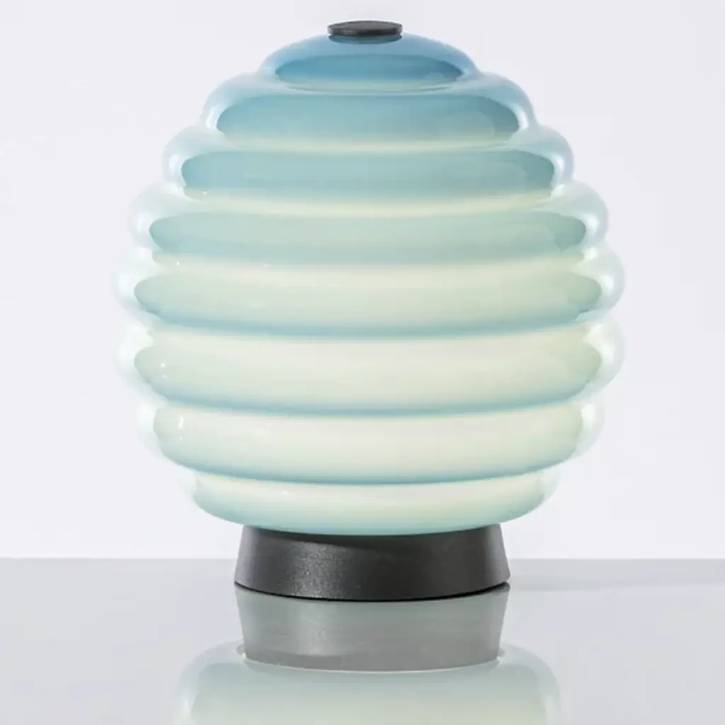 The Deco Rechargeable LED Table Lamp from Venini reimagines a 1930 classic through modern innovation. Murano craftsmen preserve Napoleone Martinuzzi's original vision while incorporating rechargeable technology. The Italian-made lamp adorns side tables and consoles with concentric rings that catch and scatter light. Its portable design allows for flexible placement throughout living spaces, from intimate reading nooks to expansive great rooms. Each handcrafted piece brings historic artistry into daily moments, while convenient controls provide brightness adjustment to suit any activity or mood.