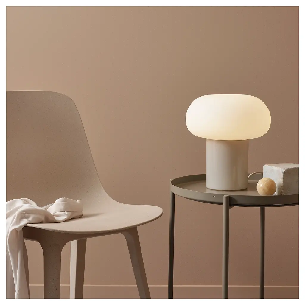 DEJSA Table lamp - beige/opal glass 11 ". If you want to be able to easily change the light according to mood and needs, you can dim and switch between warm and cold light wirelessly if you complete the lamp with TRÅDFRI remote control kit. Sold separately.