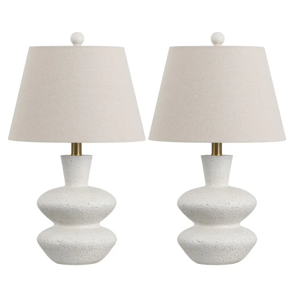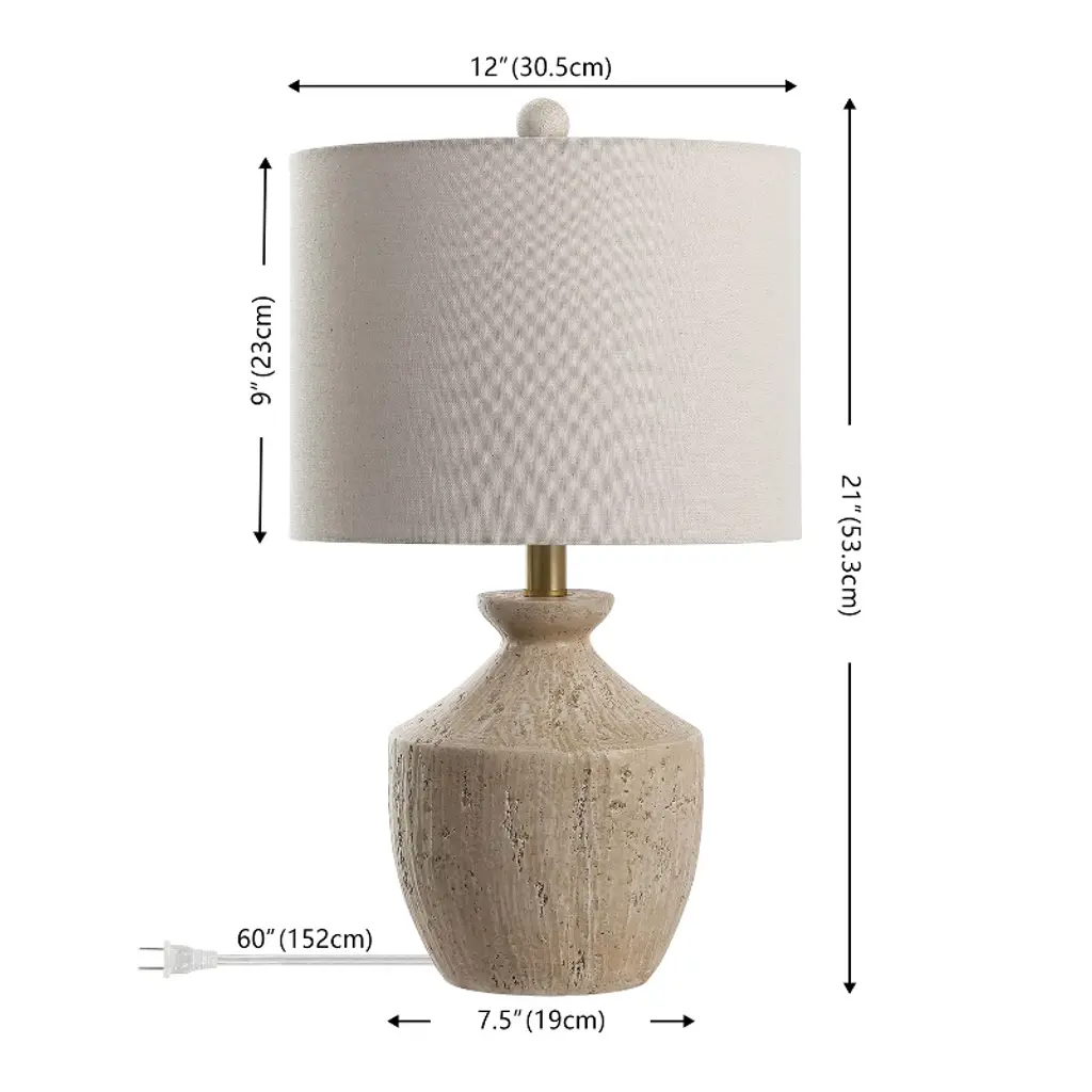 Introducing the Delacey 21 inch light brown resin table lamp set of two. Perfect for adding a touch of elegance to any room, this lamp combines a beautifully crafted resin body with a soft fabric shade, offering both functionality and style. The gentle light brown hue complements a variety of decor themes, making it a versatile addition to your home. Each lamp in the set stands at 21 inches, making them an ideal size for bedside tables, desks, or living room end tables. The resin material provides a sturdy, attractive base that seamlessly blends with the delicate fabric shade to create a warm and inviting ambiance. Whether you are looking to revamp your bedroom or enhance your living space, the Delacey table lamp set offers a stylish lighting solution. Its understated design ensures it fits effortlessly into both modern and traditional settings. Illuminate your home with the soft, serene glow of these lamps, and transform your space into a haven of comfort and sophistication.