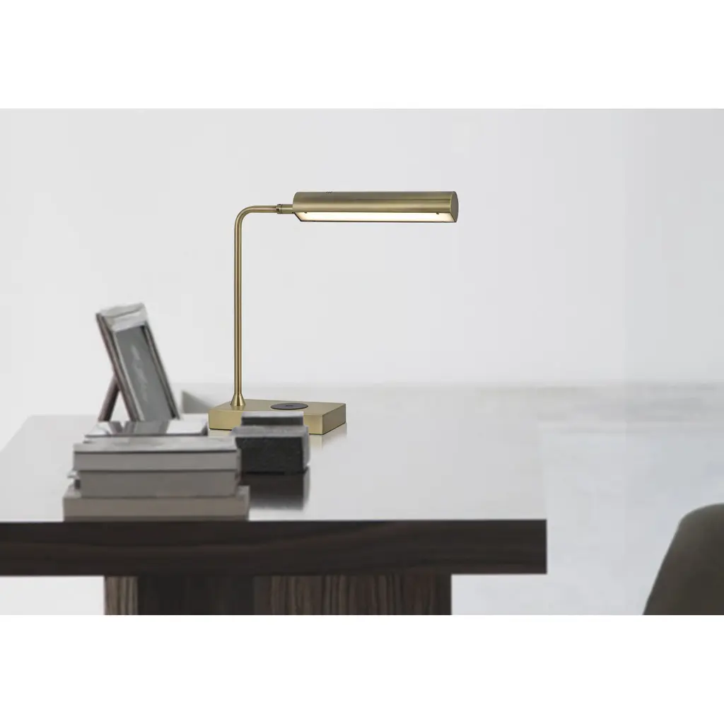 Update your home or office with this energy efficient LED pharmacy style desk lamp. It provides the perfect amount of of lighting in a desk or workspace area. With it's slim frame and contemporary design, it is a good fit for small spaces and versatile enough to work with many styles.