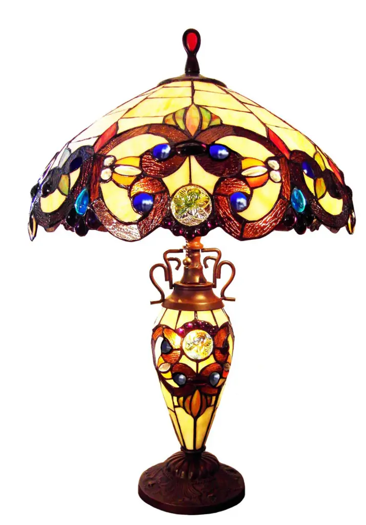 Demetra Aurora is a beautiful victorian-style double lit table lamp, featuring brightly colored stained glass that will light up your home. It is made up of 434 pieces of copper-foiled, stained art glass, 118 beads and 5 marbles, expertly designed and crafted by hand. Each of CHLOE''s Tiffany-style stained glass products are formed using the very same technique developed by Louis Comfort Tiffany in the early 1900''s, using hand cut stained art glass, each wrapped in fine copper foil and soldered together at extremely high temperatures to form each unique piece. Exact size to the nearest inch may vary, and exact color of each glass piece may vary due to each piece being hand crafted. Dry listed and recommended for an indoor setting.