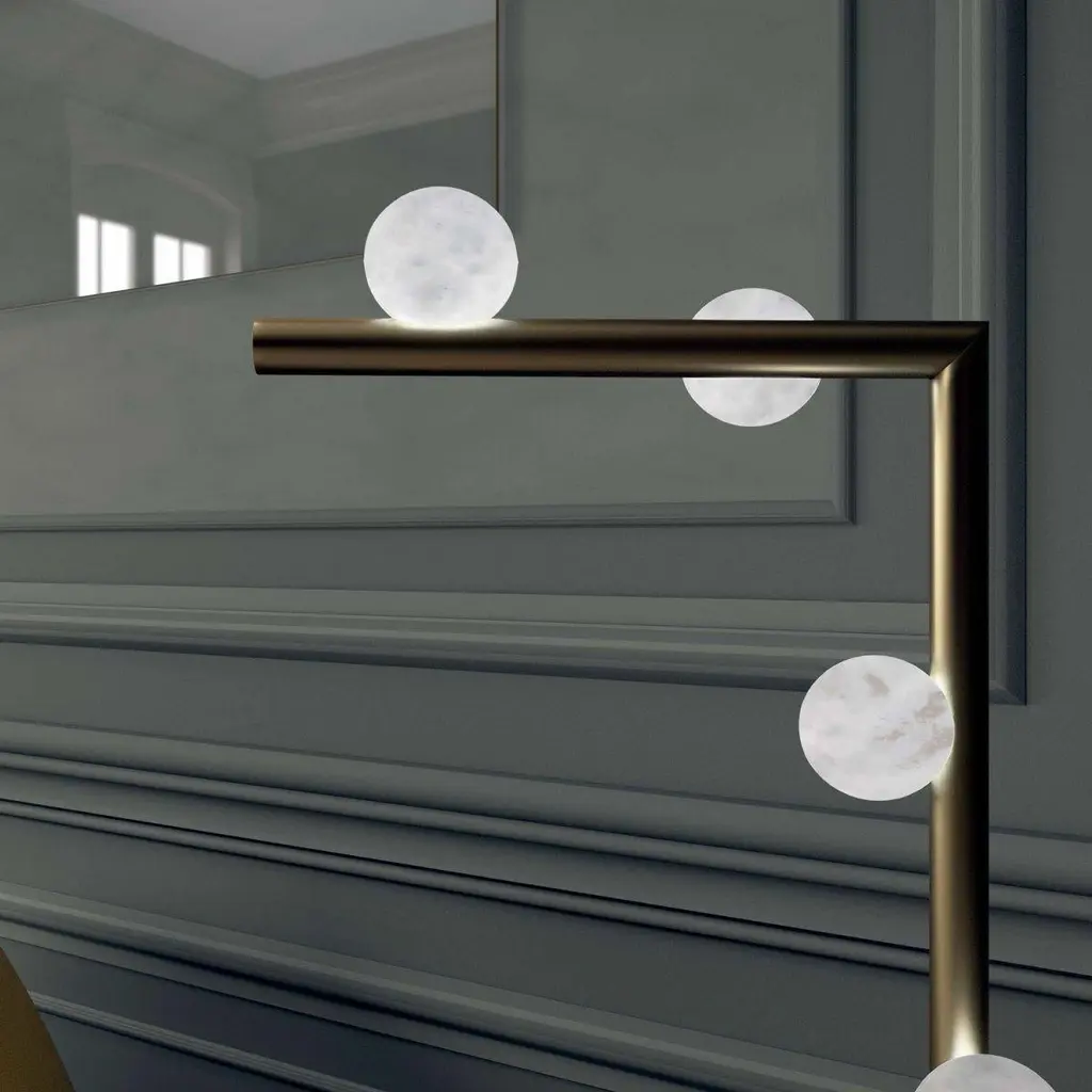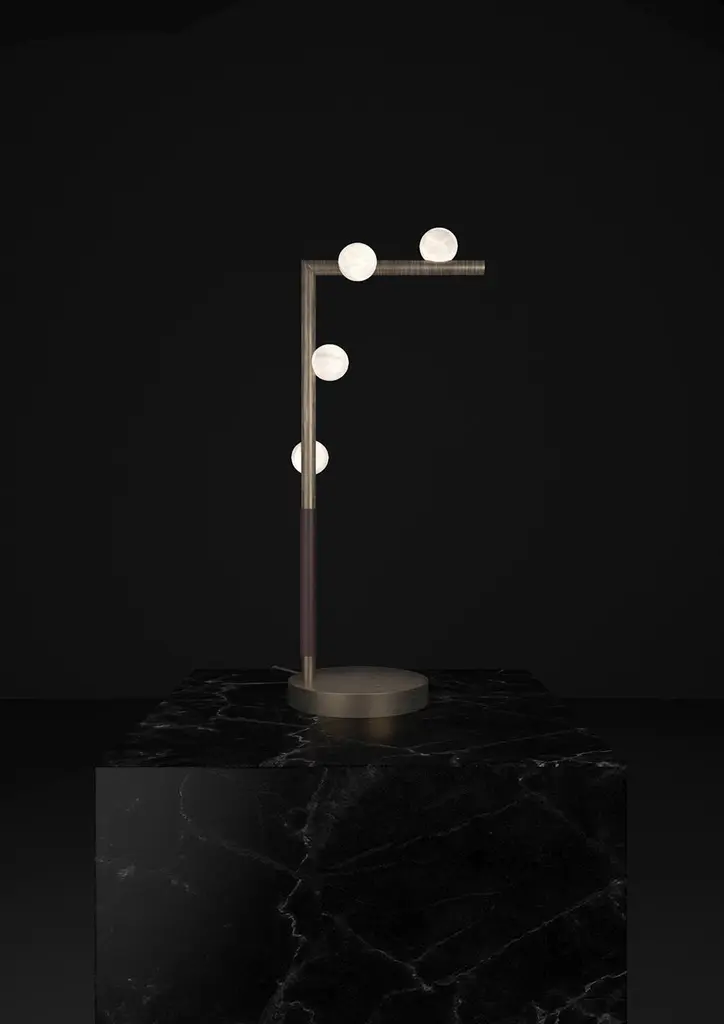Demetra Brushed Burnished Metal Table Lamp by Alabastro ItalianoDimensions: D 20 x W 35 x H 67 cm.Materials: White alabaster, metal and leather.Available in different finishes: Shiny Silver, Bronze, Brushed Brass, Ruggine of Florence, Brushed Burnished, Shiny Gold, Brushed Black, Freedom Green, Shiny Black and Copper. Please contact us.All our lamps can be wired according to each country. If sold to the USA it will be wired for the USA for instance.The name Demetra, goddess of flora, sister of Zeus, fully reflects the particular shape of this series by Alabastro Italiano. The spheres, of pure hand-turned alabaster, look like fruits hanging from the branches of a hypothetical tree of light. These brilliant elements stand out between heaven and earth and symbolize the richness that only Mother Nature can offer us.After years of experience in the family business, which specializes in design and lighting, Riccardo and Alberto Ongarato found the brand Alabastro Italiano.Each project is conceived and designed to give a strong sign of recognizability and uniqueness. The use of precious materials such as alabaster, brass, leather and blown glass, worked by the skilful hands of our craftsmen, are combined to create “timeless” objects.From the depths of the earth to the light of the sun. ALABASTRO ITALIANO care about these extremes and transcends them in a creative dynamic that emphasizes simplicity and clean-cut lines.The company has created an entirely new project MADE IN ITALY, revolutionizing the previously existing collections into eternal and evergreen lighting elements. By designing clean-cut and original lines, built-in with the latest technology and continuously innovating, ALABASTRO ITALIANO has never lost sight of its goal: perfection. The result of this work is an extraordinary collection of alabaster lightings.Alabaster needs human hands to come to life. The charm of these stone objects comes from their uniqueness, from the fact that they come from the hand of those who has left a mark and a memory with their work, each grain makes each piece unique.Alabaster needs human hands to come to life. The charm of these stone objects comes from their uniqueness, from the fact that they come from the hand of those who has left a mark and a memory with their work, each grain makes each piece unique.Alabaster is a Material that leaves little traces of magic all around it. It is difficult to identify the exact point where the Material ends and its reflection begins. It is impossible to understand how far the light sinks in its soft transparency. It changes according to the positions in which it is placed, depending on the point of view. Alabaster is a compact and rare stone that lays down very precise laws requires a familiarity that only Italian craftsmen possess.Alabastro Italiano collaborates with each client to create a unique project. Starting from the advice for better architectural lighting, it brings its know-how, materials, design and creative inspiration to interior architects and interior designers.