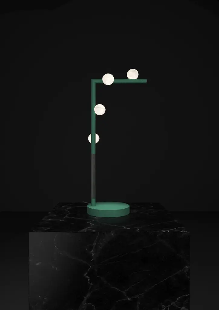 Demetra Freedom Green Metal Table Lamp by Alabastro ItalianoDimensions: D 20 x W 35 x H 67 cm.Materials: White alabaster, metal and leather.Available in different finishes: Shiny Silver, Bronze, Brushed Brass, Ruggine of Florence, Brushed Burnished, Shiny Gold, Brushed Black, Freedom Green, Shiny Black and Copper. Please contact us.All our lamps can be wired according to each country. If sold to the USA it will be wired for the USA for instance.The name Demetra, goddess of flora, sister of Zeus, fully reflects the particular shape of this series by Alabastro Italiano. The spheres, of pure hand-turned alabaster, look like fruits hanging from the branches of a hypothetical tree of light. These brilliant elements stand out between heaven and earth and symbolize the richness that only Mother Nature can offer us.After years of experience in the family business, which specializes in design and lighting, Riccardo and Alberto Ongarato found the brand Alabastro Italiano.Each project is conceived and designed to give a strong sign of recognizability and uniqueness. The use of precious materials such as alabaster, brass, leather and blown glass, worked by the skilful hands of our craftsmen, are combined to create “timeless” objects.From the depths of the earth to the light of the sun. ALABASTRO ITALIANO care about these extremes and transcends them in a creative dynamic that emphasizes simplicity and clean-cut lines.The company has created an entirely new project MADE IN ITALY, revolutionizing the previously existing collections into eternal and evergreen lighting elements. By designing clean-cut and original lines, built-in with the latest technology and continuously innovating, ALABASTRO ITALIANO has never lost sight of its goal: perfection. The result of this work is an extraordinary collection of alabaster lightings.Alabaster needs human hands to come to life. The charm of these stone objects comes from their uniqueness, from the fact that they come from the hand of those who has left a mark and a memory with their work, each grain makes each piece unique.Alabaster needs human hands to come to life. The charm of these stone objects comes from their uniqueness, from the fact that they come from the hand of those who has left a mark and a memory with their work, each grain makes each piece unique.Alabaster is a Material that leaves little traces of magic all around it. It is difficult to identify the exact point where the Material ends and its reflection begins. It is impossible to understand how far the light sinks in its soft transparency. It changes according to the positions in which it is placed, depending on the point of view. Alabaster is a compact and rare stone that lays down very precise laws requires a familiarity that only Italian craftsmen possess.Alabastro Italiano collaborates with each client to create a unique project. Starting from the advice for better architectural lighting, it brings its know-how, materials, design and creative inspiration to interior architects and interior designers.