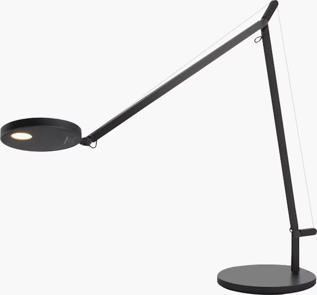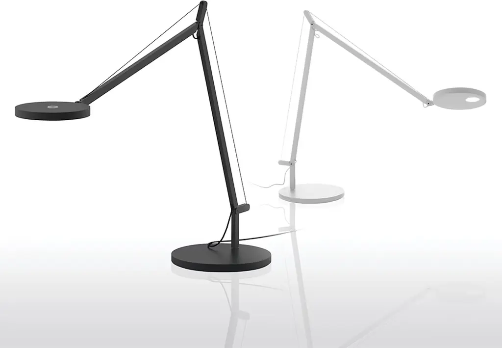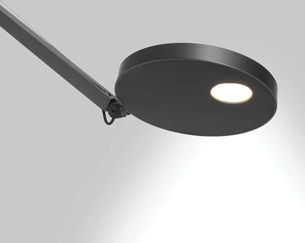 Minimal in concept, Demetra (2012) has a rotatable and tiltable head with integrated dimmer atop an articulating arm with tension cable for easy positioning, providing direct illumination where needed. Constructed of lightweight aluminum. Includes motion sensor for auto shutoff when left unattended. Bulb (included): 10W LED array. UL Listed. Made in Italy.
