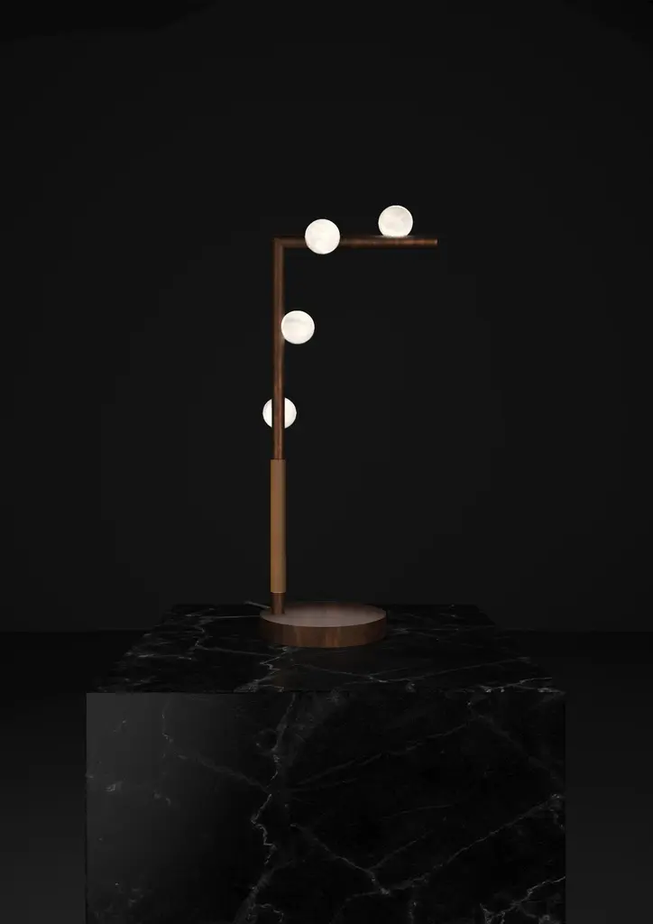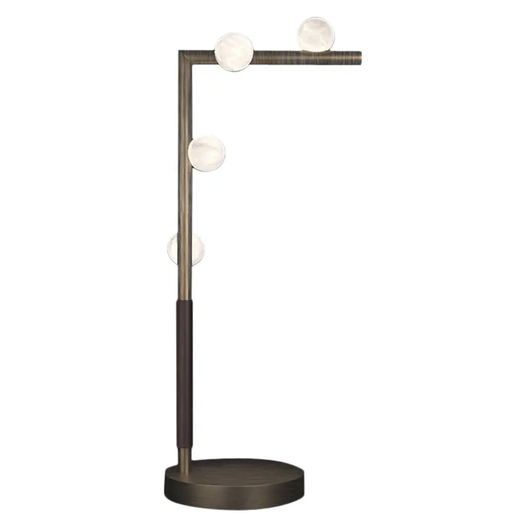 Demetra Ruggine Of Florence Metal Table Lamp by Alabastro ItalianoDimensions: D 20 x W 35 x H 67 cm.Materials: White alabaster, metal and leather.Available in different finishes: Shiny Silver, Bronze, Brushed Brass, Ruggine of Florence, Brushed Burnished, Shiny Gold, Brushed Black, Freedom Green, Shiny Black and Copper. Please contact us.All our lamps can be wired according to each country. If sold to the USA it will be wired for the USA for instance.The name Demetra, goddess of flora, sister of Zeus, fully reflects the particular shape of this series by Alabastro Italiano. The spheres, of pure hand-turned alabaster, look like fruits hanging from the branches of a hypothetical tree of light. These brilliant elements stand out between heaven and earth and symbolize the richness that only Mother Nature can offer us.After years of experience in the family business, which specializes in design and lighting, Riccardo and Alberto Ongarato found the brand Alabastro Italiano.Each project is conceived and designed to give a strong sign of recognizability and uniqueness. The use of precious materials such as alabaster, brass, leather and blown glass, worked by the skilful hands of our craftsmen, are combined to create “timeless” objects.From the depths of the earth to the light of the sun. ALABASTRO ITALIANO care about these extremes and transcends them in a creative dynamic that emphasizes simplicity and clean-cut lines.The company has created an entirely new project MADE IN ITALY, revolutionizing the previously existing collections into eternal and evergreen lighting elements. By designing clean-cut and original lines, built-in with the latest technology and continuously innovating, ALABASTRO ITALIANO has never lost sight of its goal: perfection. The result of this work is an extraordinary collection of alabaster lightings.Alabaster needs human hands to come to life. The charm of these stone objects comes from their uniqueness, from the fact that they come from the hand of those who has left a mark and a memory with their work, each grain makes each piece unique.Alabaster needs human hands to come to life. The charm of these stone objects comes from their uniqueness, from the fact that they come from the hand of those who has left a mark and a memory with their work, each grain makes each piece unique.Alabaster is a Material that leaves little traces of magic all around it. It is difficult to identify the exact point where the Material ends and its reflection begins. It is impossible to understand how far the light sinks in its soft transparency. It changes according to the positions in which it is placed, depending on the point of view. Alabaster is a compact and rare stone that lays down very precise laws requires a familiarity that only Italian craftsmen possess.Alabastro Italiano collaborates with each client to create a unique project. Starting from the advice for better architectural lighting, it brings its know-how, materials, design and creative inspiration to interior architects and interior designers.