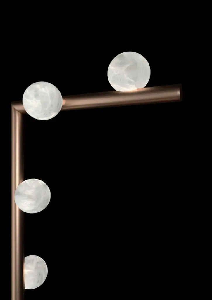 Demetra Shiny Gold Metal Table Lamp by Alabastro ItalianoDimensions: D 20 x W 35 x H 67 cm.Materials: White alabaster, metal and leather.Available in different finishes: Shiny Silver, Bronze, Brushed Brass, Ruggine of Florence, Brushed Burnished, Shiny Gold, Brushed Black, Freedom Green, Shiny Black and Copper. Please contact us.All our lamps can be wired according to each country. If sold to the USA it will be wired for the USA for instance.The name Demetra, goddess of flora, sister of Zeus, fully reflects the particular shape of this series by Alabastro Italiano. The spheres, of pure hand-turned alabaster, look like fruits hanging from the branches of a hypothetical tree of light. These brilliant elements stand out between heaven and earth and symbolize the richness that only Mother Nature can offer us.After years of experience in the family business, which specializes in design and lighting, Riccardo and Alberto Ongarato found the brand Alabastro Italiano.Each project is conceived and designed to give a strong sign of recognizability and uniqueness. The use of precious materials such as alabaster, brass, leather and blown glass, worked by the skilful hands of our craftsmen, are combined to create “timeless” objects.From the depths of the earth to the light of the sun. ALABASTRO ITALIANO care about these extremes and transcends them in a creative dynamic that emphasizes simplicity and clean-cut lines.The company has created an entirely new project MADE IN ITALY, revolutionizing the previously existing collections into eternal and evergreen lighting elements. By designing clean-cut and original lines, built-in with the latest technology and continuously innovating, ALABASTRO ITALIANO has never lost sight of its goal: perfection. The result of this work is an extraordinary collection of alabaster lightings.Alabaster needs human hands to come to life. The charm of these stone objects comes from their uniqueness, from the fact that they come from the hand of those who has left a mark and a memory with their work, each grain makes each piece unique.Alabaster needs human hands to come to life. The charm of these stone objects comes from their uniqueness, from the fact that they come from the hand of those who has left a mark and a memory with their work, each grain makes each piece unique.Alabaster is a Material that leaves little traces of magic all around it. It is difficult to identify the exact point where the Material ends and its reflection begins. It is impossible to understand how far the light sinks in its soft transparency. It changes according to the positions in which it is placed, depending on the point of view. Alabaster is a compact and rare stone that lays down very precise laws requires a familiarity that only Italian craftsmen possess.Alabastro Italiano collaborates with each client to create a unique project. Starting from the advice for better architectural lighting, it brings its know-how, materials, design and creative inspiration to interior architects and interior designers.