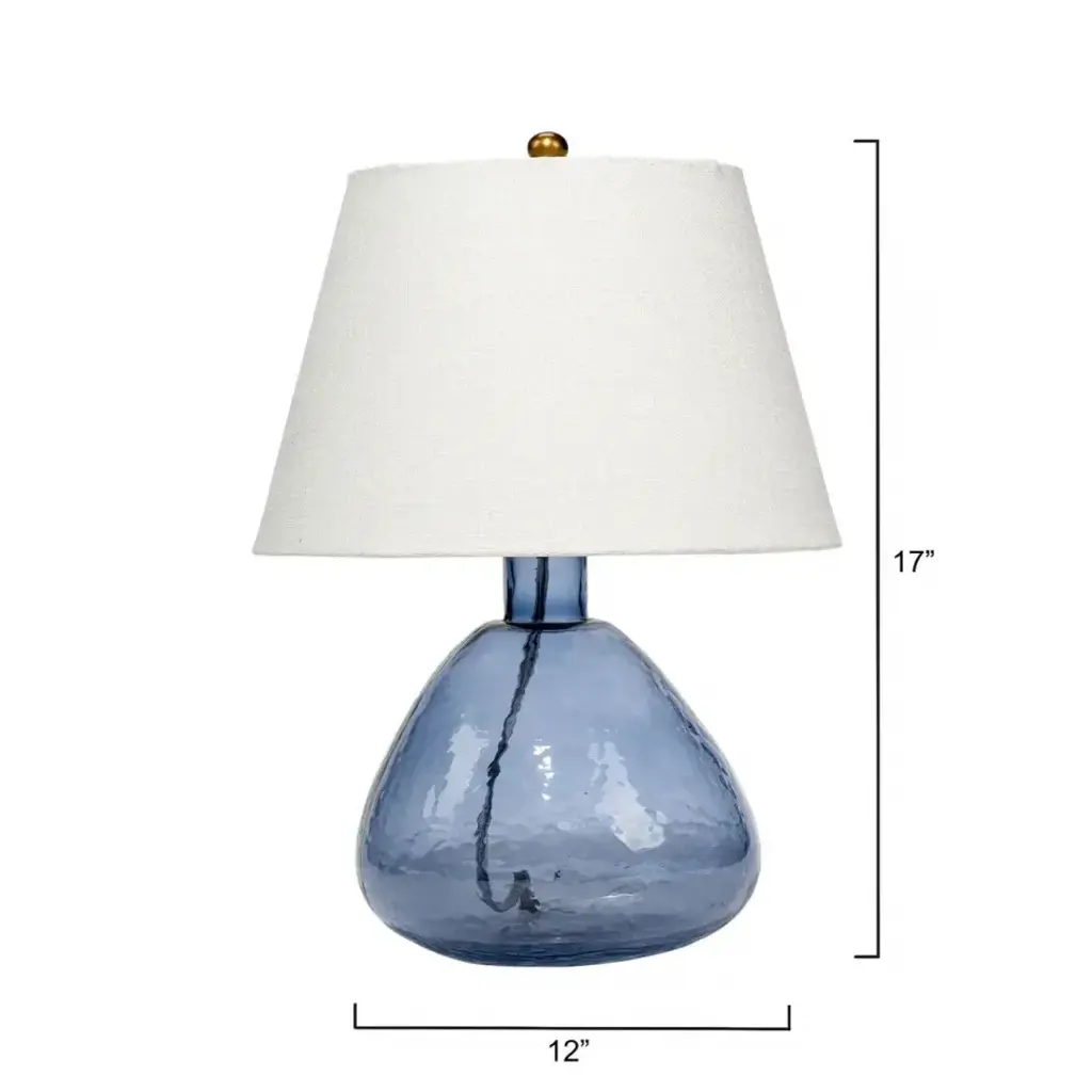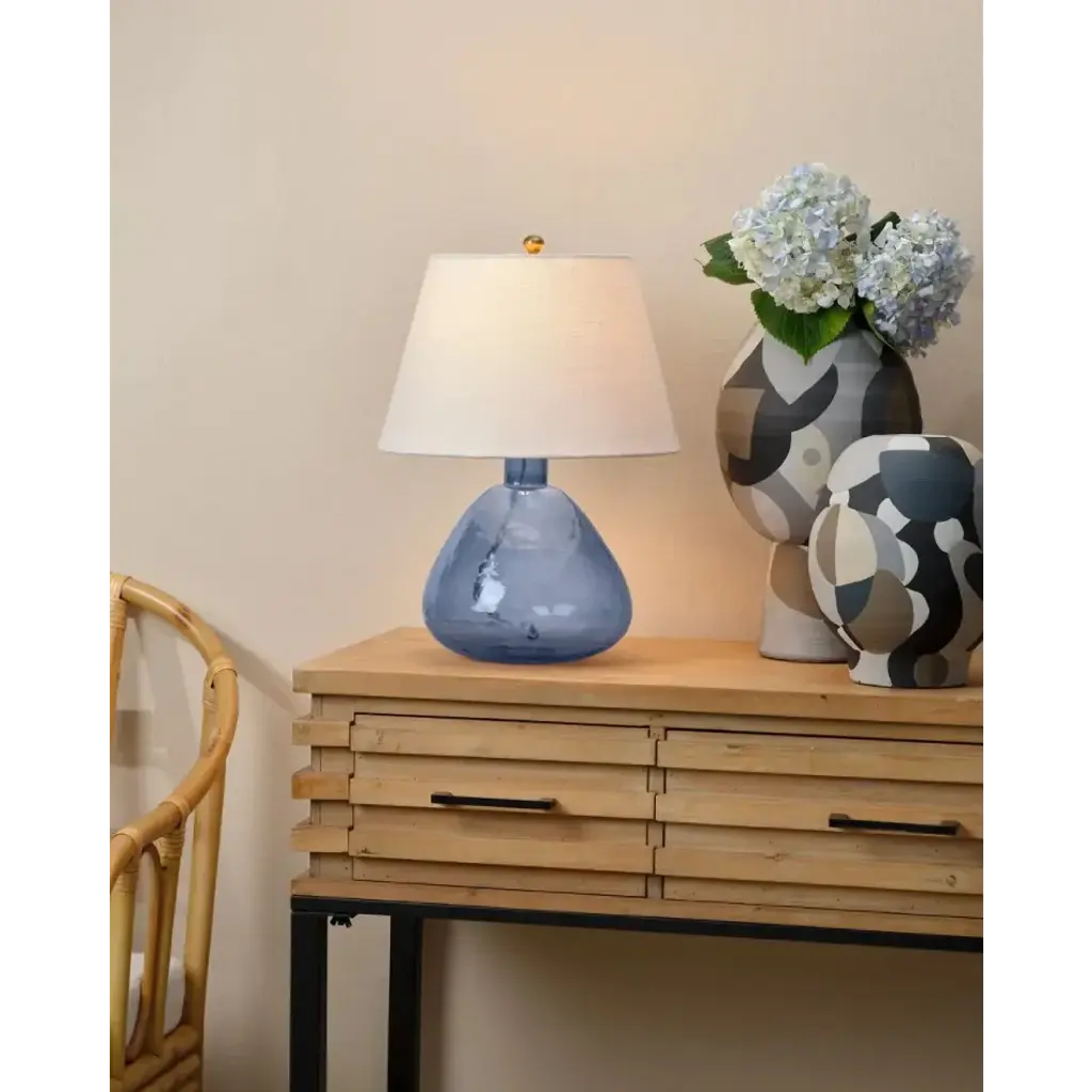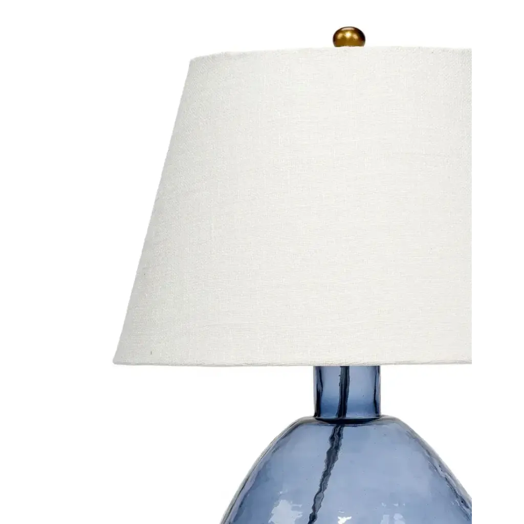 Inspired by the highly polished bits of sea glass that wash up on beaches across the globe, this serenely beautiful table lamp is topped with a tapered linen shade and a coordinating metal finial. Display a pair on either end of a large console, or use individually to instantly brighten and refresh a guest room.