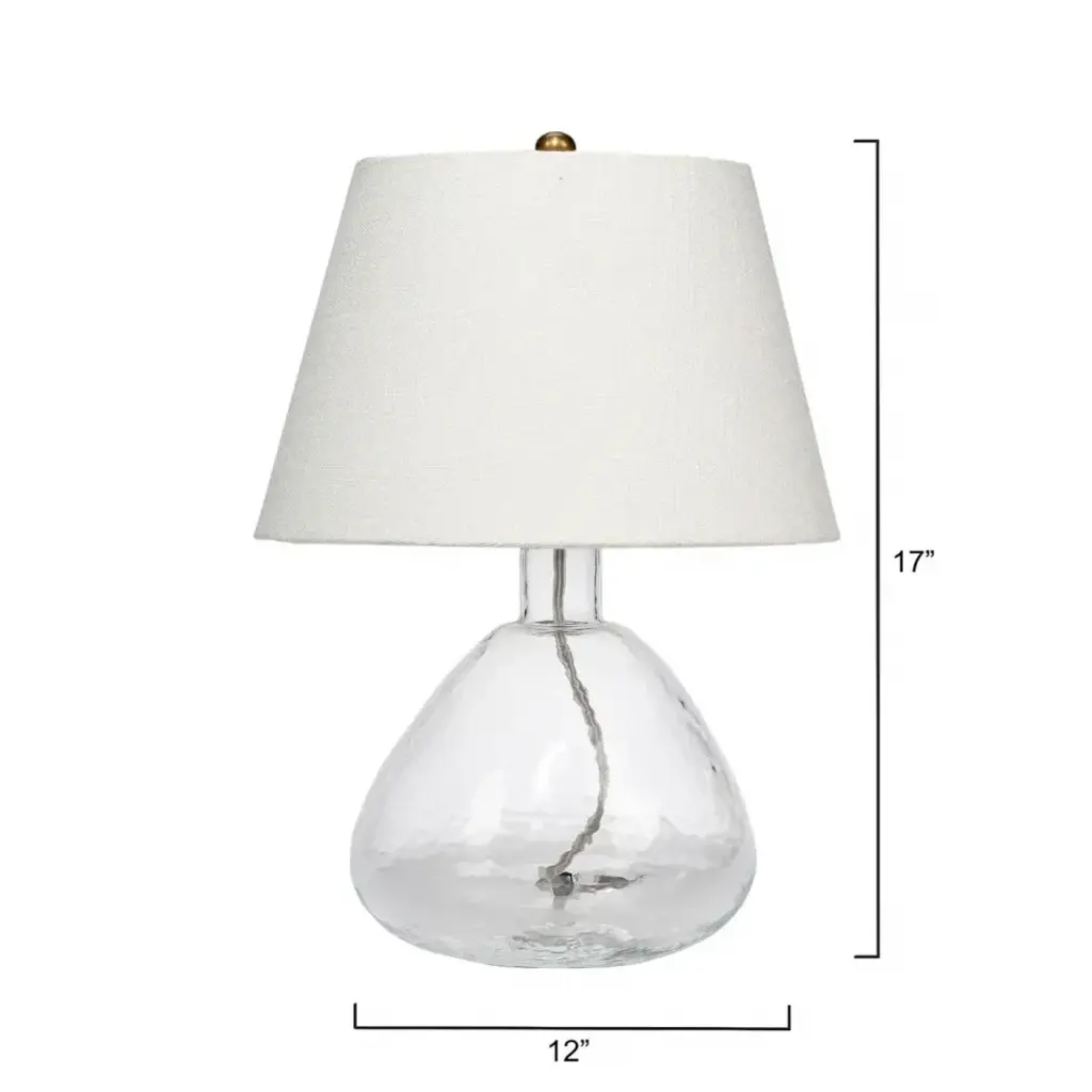 Inspired by the highly polished bits of sea glass that wash up on beaches across the globe, this serenely beautiful table lamp is topped with a tapered linen shade and a coordinating metal finial. Display a pair on either end of a large console, or use individually to instantly brighten and refresh a guest room.
