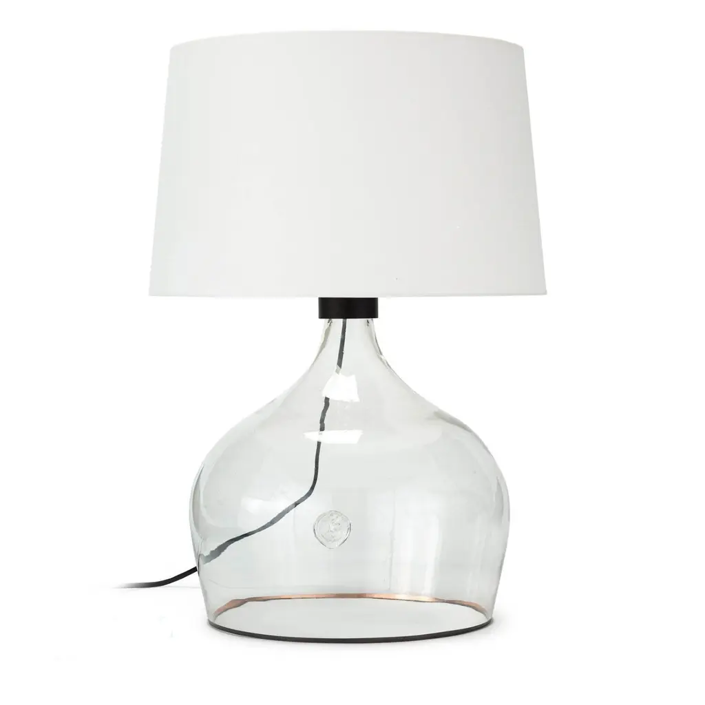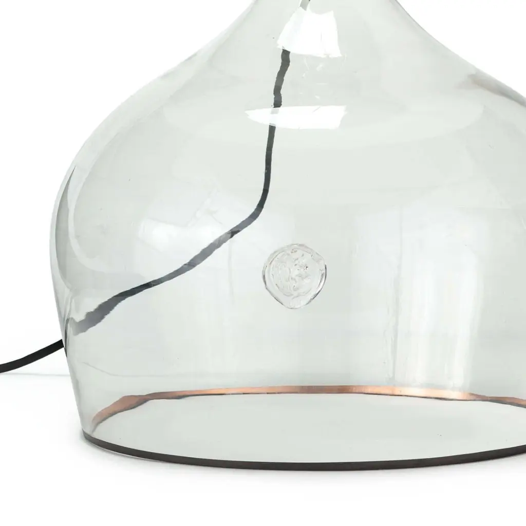 Add refreshing character to your living room, dining room or bedroom with this beautifully constructed glass vessel lamp. Thoughtful detailing such as its black cloth cord, copper stripe inside the base and glass medallion make this lamp the perfect balance of casual and sophisticated.