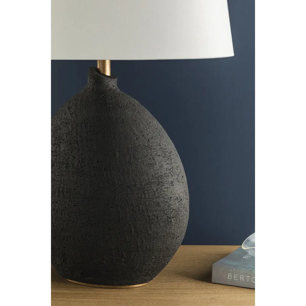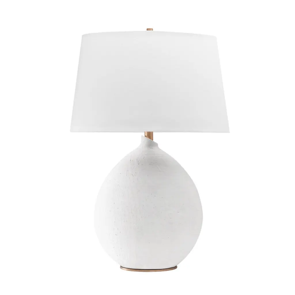 Reminiscent of a hand-sculpted vase, Denali combines an earthy feel with a subtle sophistication. Gold Leaf accents give the fixture a touch of shine and the asymmetrical line at the top of its smooth teardrop shape adds a sense of calm and visual interest. The soft Belgian linen shade is the perfect complement to the richly textured Ceramic body. Just 4 ½" wide at the base, Denali makes a big impact but leaves a small footprint. Choose from White, Gray or Dusk Black finishes to bring an organic beauty to any space.