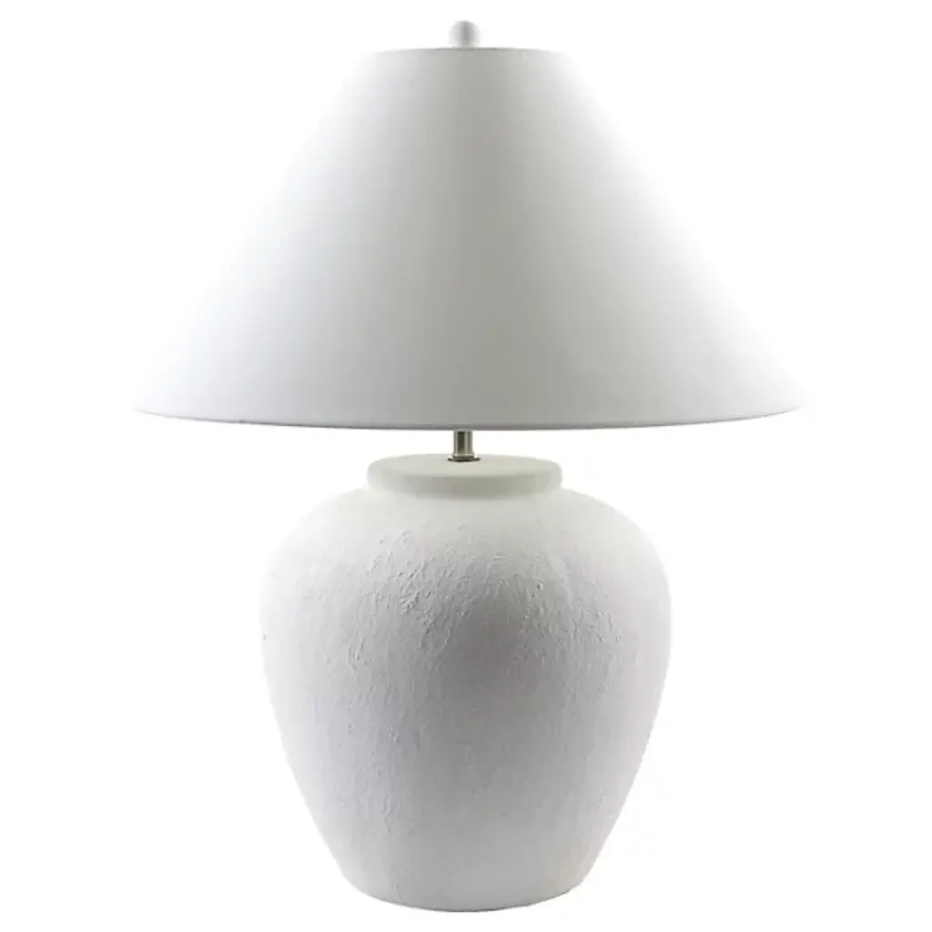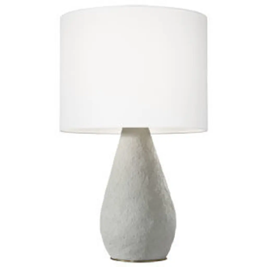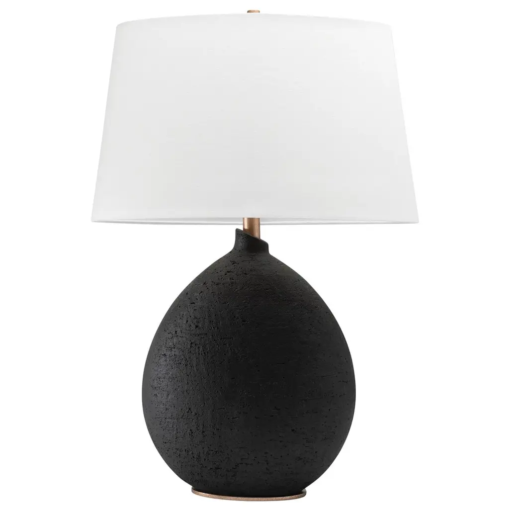 Spice up interior tables, mantles and more with the Denali Table Lamp from Hudson Valley Lighting. This elegant fixture fuses a modern shape with contemporary textures, using a metal base to hold up a rounded ceramic body with a rougher surface designed to catch eyes as well as light from above. A single stem emerges from a bevel-cut top of the ceramic body, setting a single socket beneath a flared shade of white linen, easing direct brightness into a warm ambiance from the sides.
