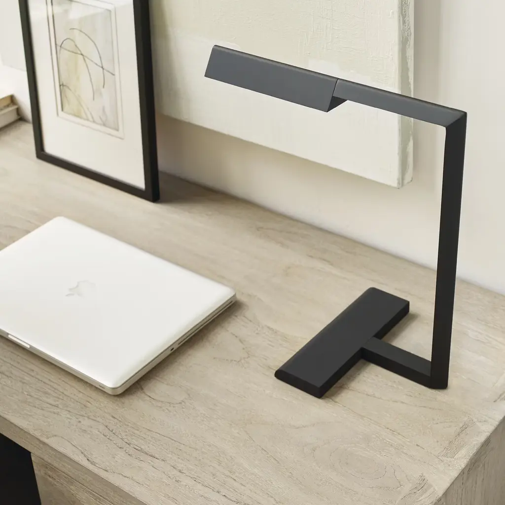 A slim, architectural form with a pivoting head, the Dessau Table Lamp (2020) brings warm, adjustable task lighting to your home office, living room, or bedroom. Serving as modern art when turned off and modern lighting when turned on, this energy-efficient LED lamp features an on-base touch-dimmer to give you a choice of three brightness levels. Bulb (included): 10W LED module; 2700K. Made in China.