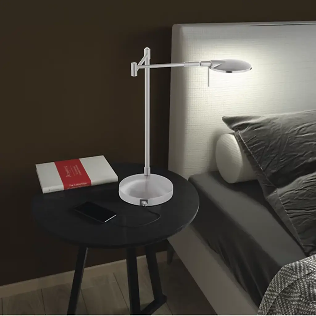 A stylish décor update. The Dessau Turbo Swing Arm LED Table Lamp by Arnsberg has a small footprint but will make a big impact on the illumination in your home. Slender in stature with an adjustable swing arm, this energy efficient lamp provides customized lighting to suit any situation. It features an integrated LED bulb that delivers a warm white illumination and is available in multiple finish options for decorating versatility.