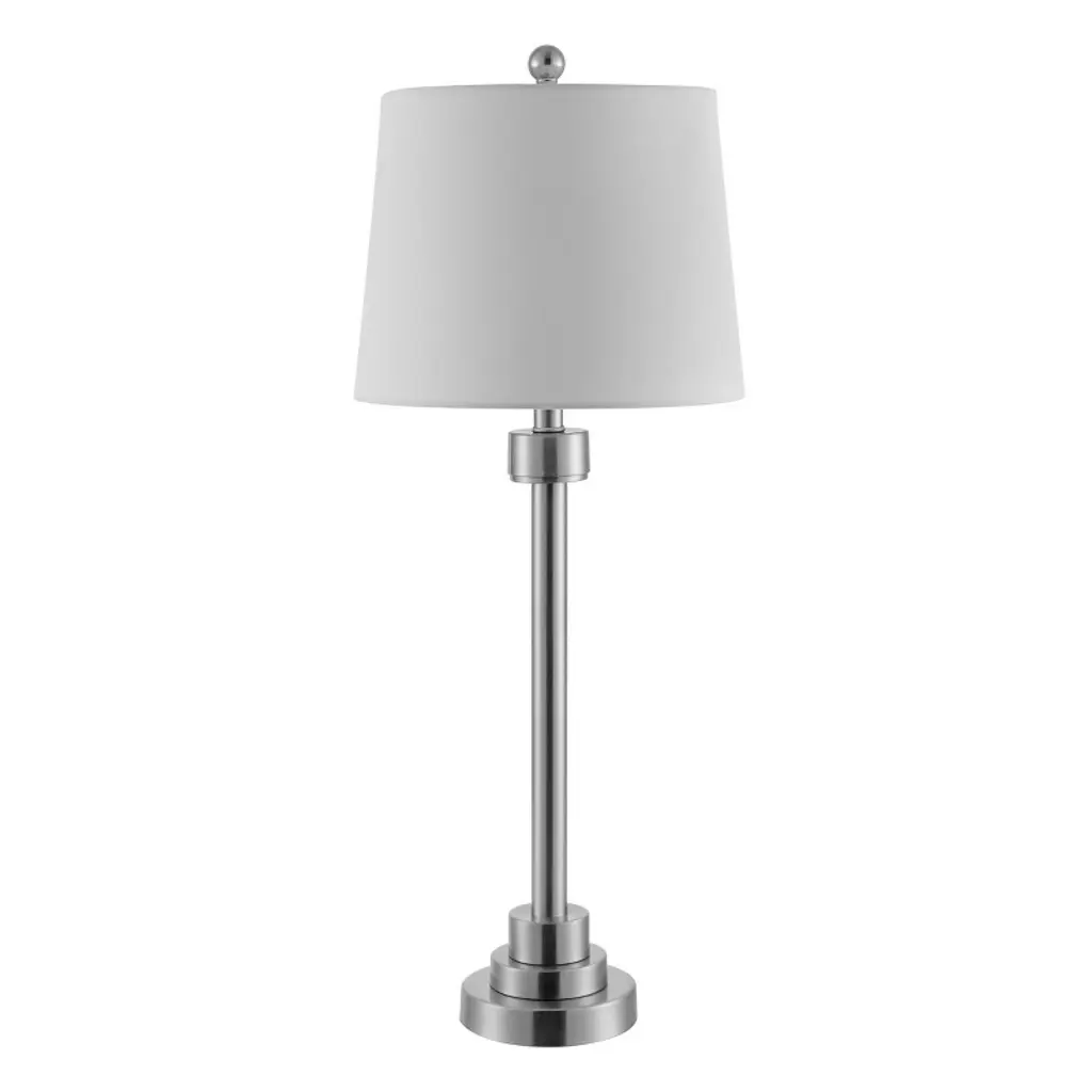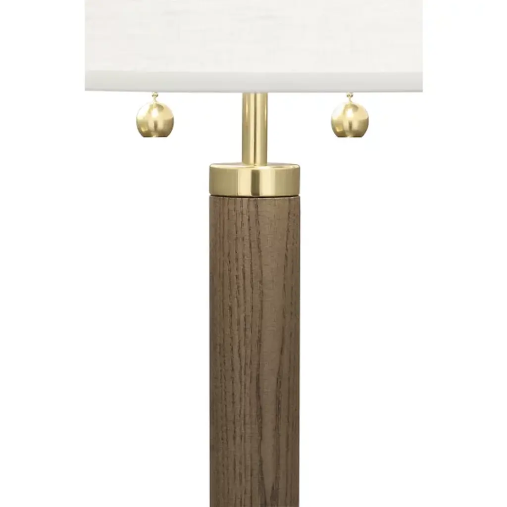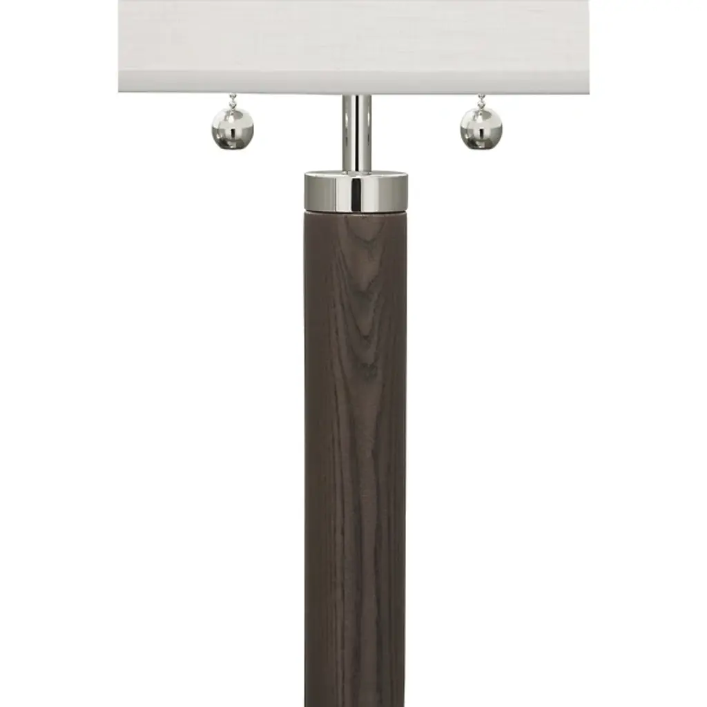 Retro minimalism with maximum appeal. The Dexter Table Lamp by Robert Abbey adds a mid-century flair while softly illuminating a home or office. The narrow cylindrical body is comprised of wood with sleek steel accents at each end, while the rounded steel base adds to its vintage look. A round fabric shade softly diffuses the lamps incandescent light while dual pull chains allow for easy on and off access to its hi-lo switch.