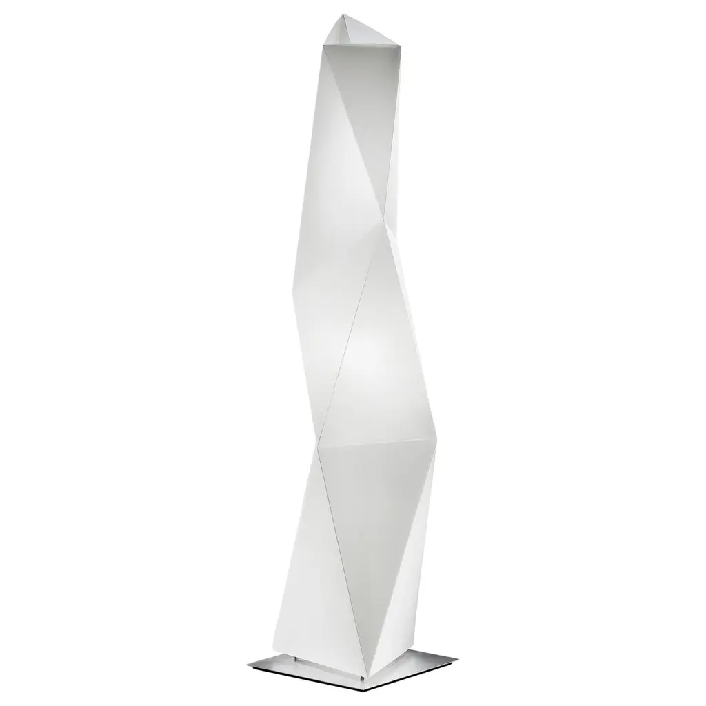 Sculptural, dynamic, and modern, inspired by the iconic works of Brancusi. Diamond’s geometric design allows the light to accentuate its various facets and angles. The luminous sculpture is available in three dimensions, each fit for different areas, from bedside tables to sitting rooms, and when grouped together, they create domestic installations. Features