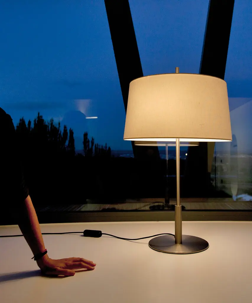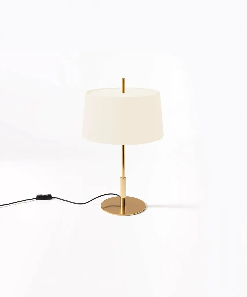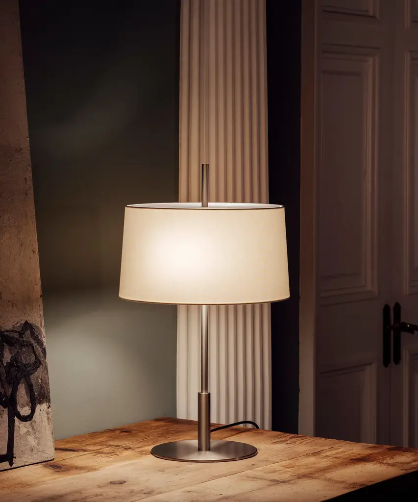 The Diana lamp pursues timelessness through the vocation of its creators. Its metallic structure and its linen shade are in perfect harmony. Designed to illuminate the new official office of the mayor of Olympic Barcelona, its print evokes a balance between classicism and modernity wherever it is placed. Produced by the Barcelona-based lighting purveyor, Santa & Cole.