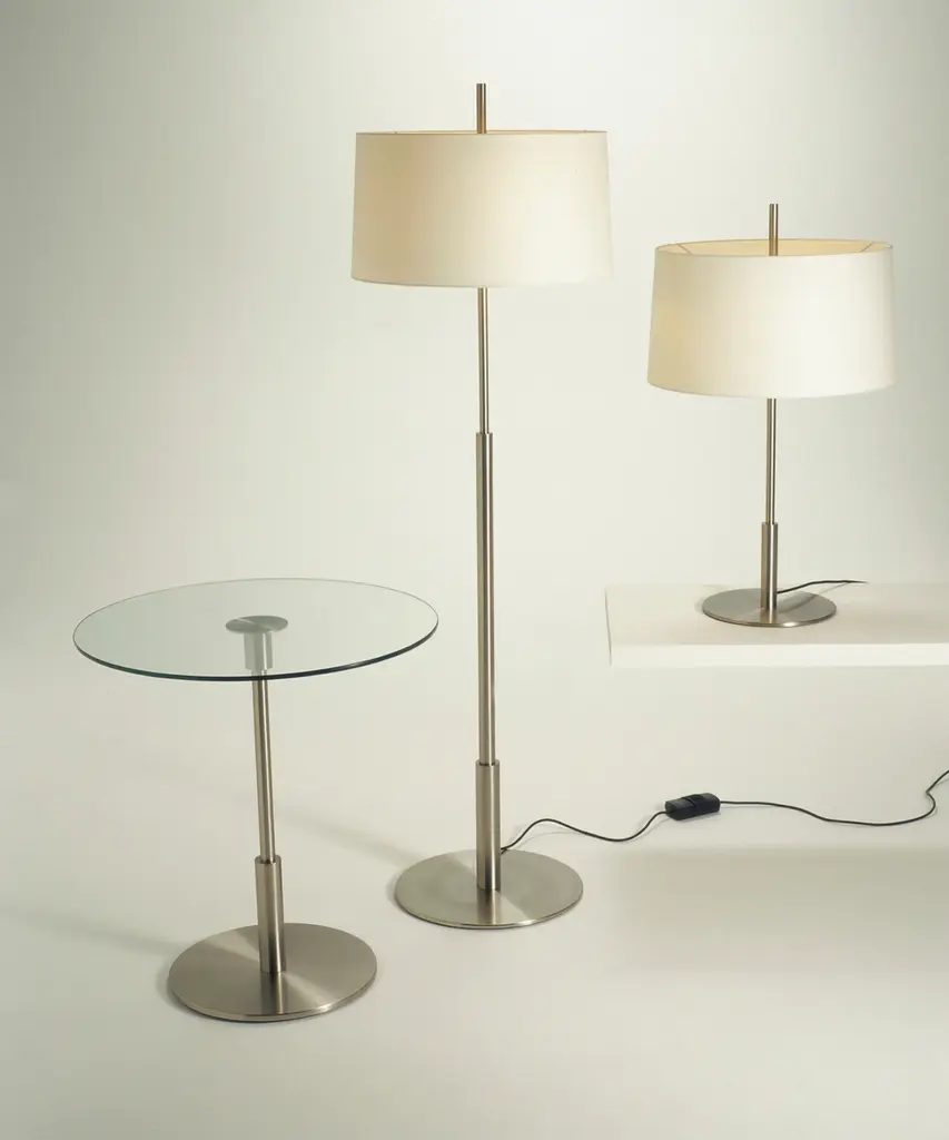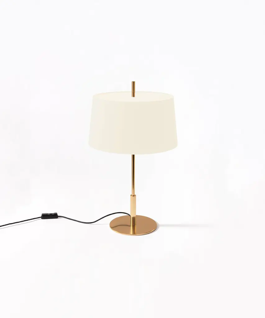 The Diana lamp pursues timelessness through the vocation of its creators. Its metallic structure and its linen shade are in perfect harmony.Designed to illuminate the new official office of the mayor of Olympic Barcelona, its print evokes a balance between classicism and modernity wherever it is placed. Produced by the Barcelona-based lighting purveyor, Santa & Cole.