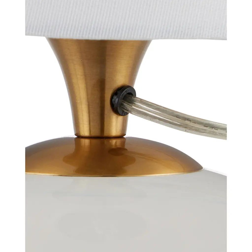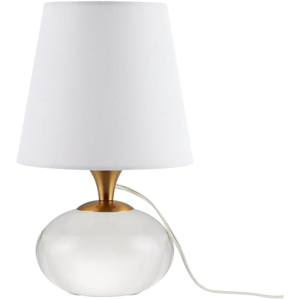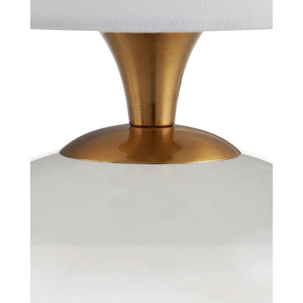 The Diantha Table Lamp is a magical composition, sitting atop an orb of carved and polished optic crystal. The antique brass metal that rises to disappear under the crisp white shade is a warm contrast, and the small scale makes this a wonderful choice for a mantle or a bookshelf.
