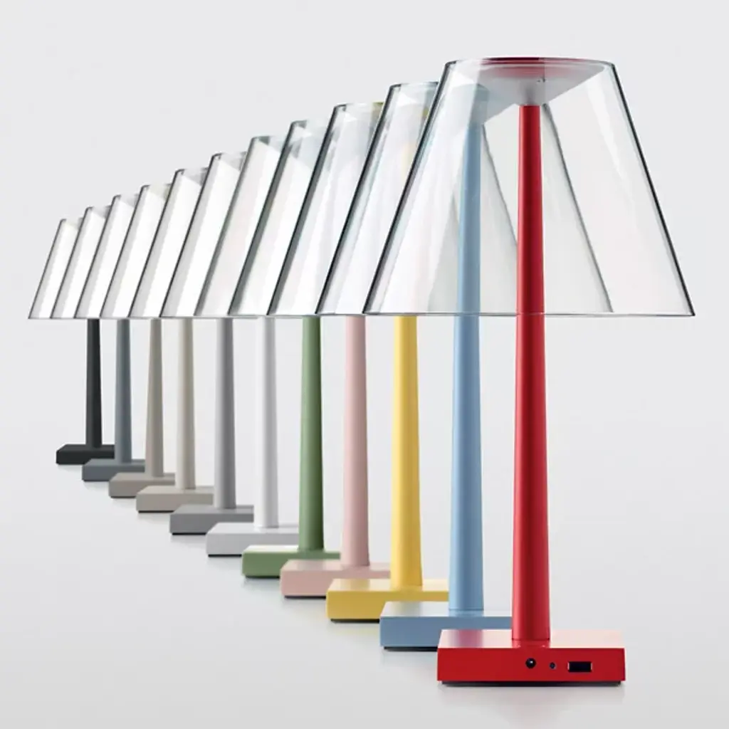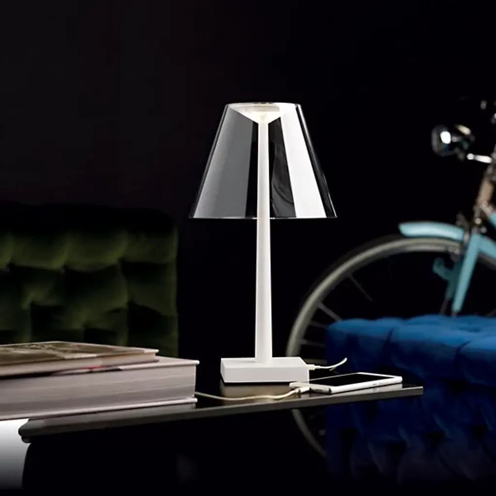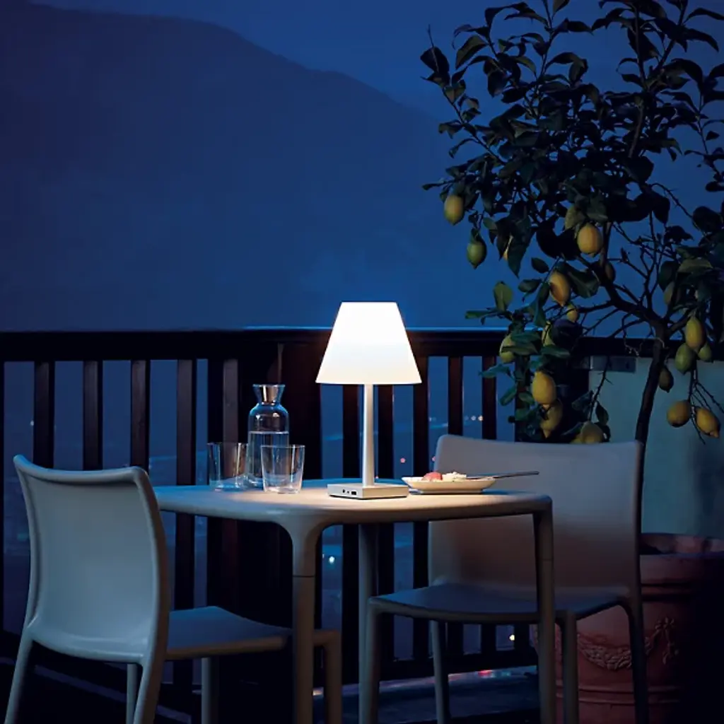 Charming lighting you can take with you. Either indoors or outdoors, the portable Dina Plus LED Rechargeable Table Lamp from Rotaliana by Luminart creates a welcoming ambiance and a memorable silhouette. The neat, attractive personality of this piece is a testament to designers Dante Donegani and Giovanni Lauda’s push for simplification in their work. The design duo gives you classic lighting elements like the tapered drum shade with an inventive modern spin. This shade sets itself apart with a slick quality created by a polycarbonate construction. A tapered aluminum column lifts the shade in the air in a silhouette that draws the eye from afar. The sleek metal base doesn’t just anchor the piece to the table, it houses its most innovative functionality. The base offers one plug for charging its 30hr light-producing battery and another USB one for conveniently charging your devices. Turn the piece on and set its vibrancy with the touch-sensitive dimmer. LED light softly filters through the shade, creating an inviting atmosphere filled with warmth.
