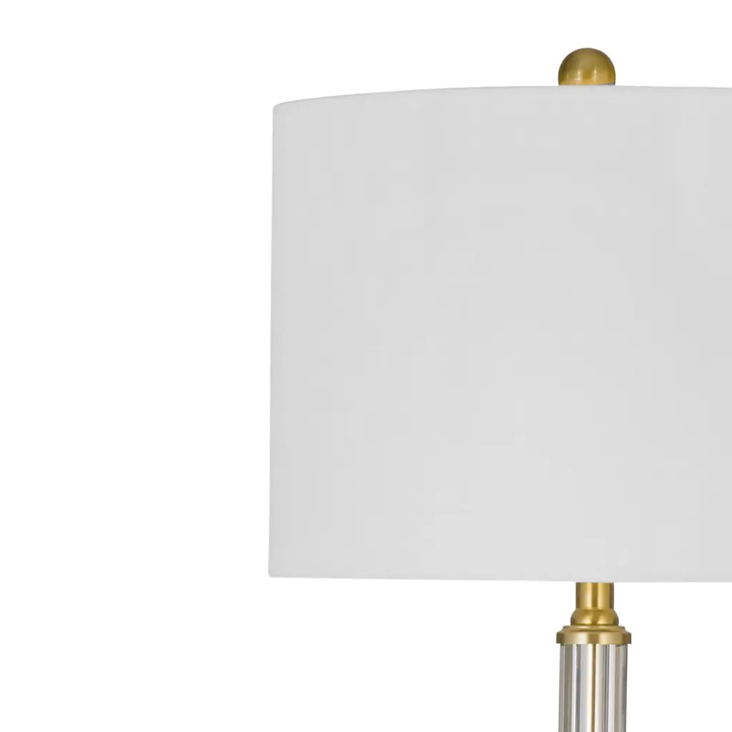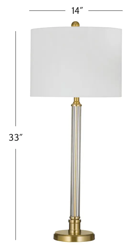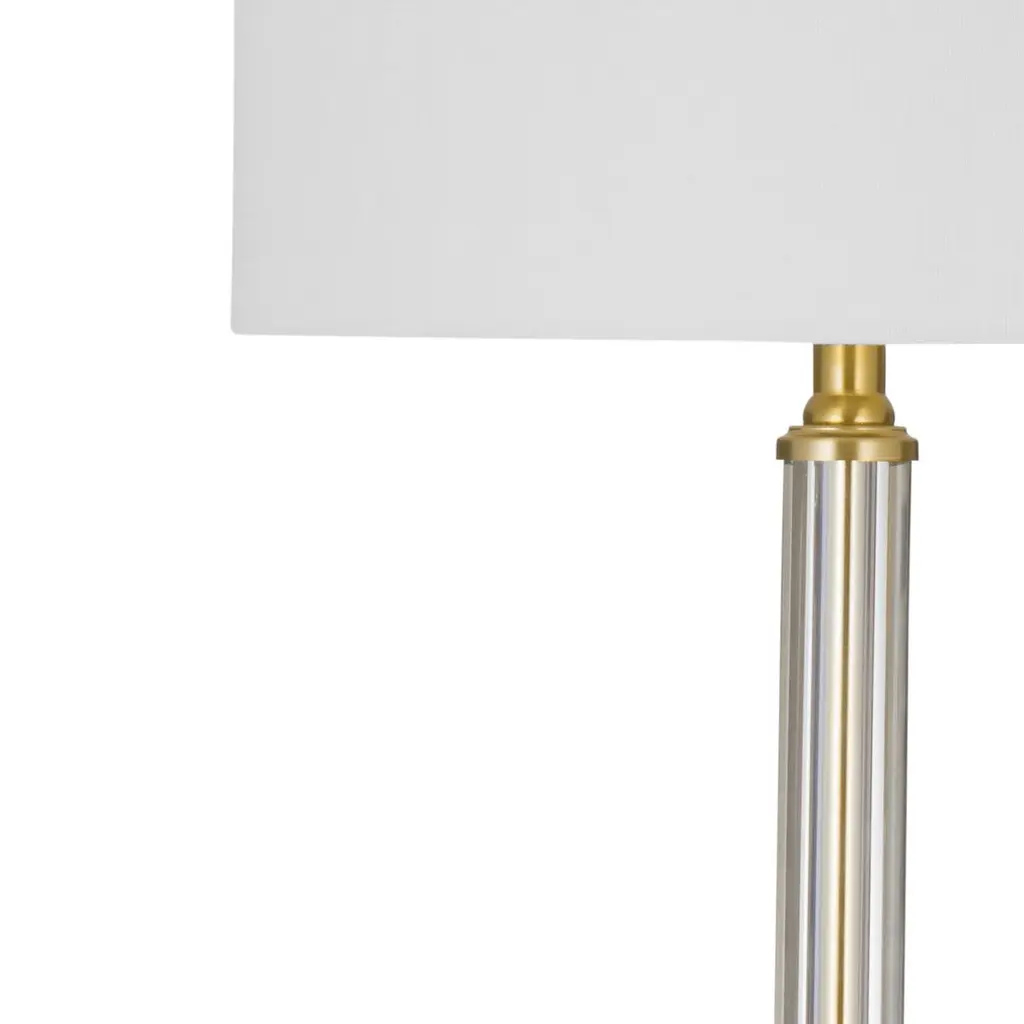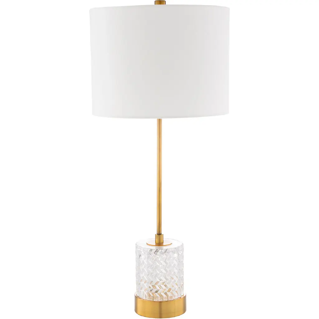 The Dio Table Lamp pairs clear glass with antique brass accents for a look that’s both modern and timeless. Its transparent base lends an airy elegance, while the warm metallic finish adds a hint of vintage charm. Finished with a crisp white drum shade, this lamp brings a polished glow to nightstands, side tables, or consoles—effortlessly complementing a variety of interiors.