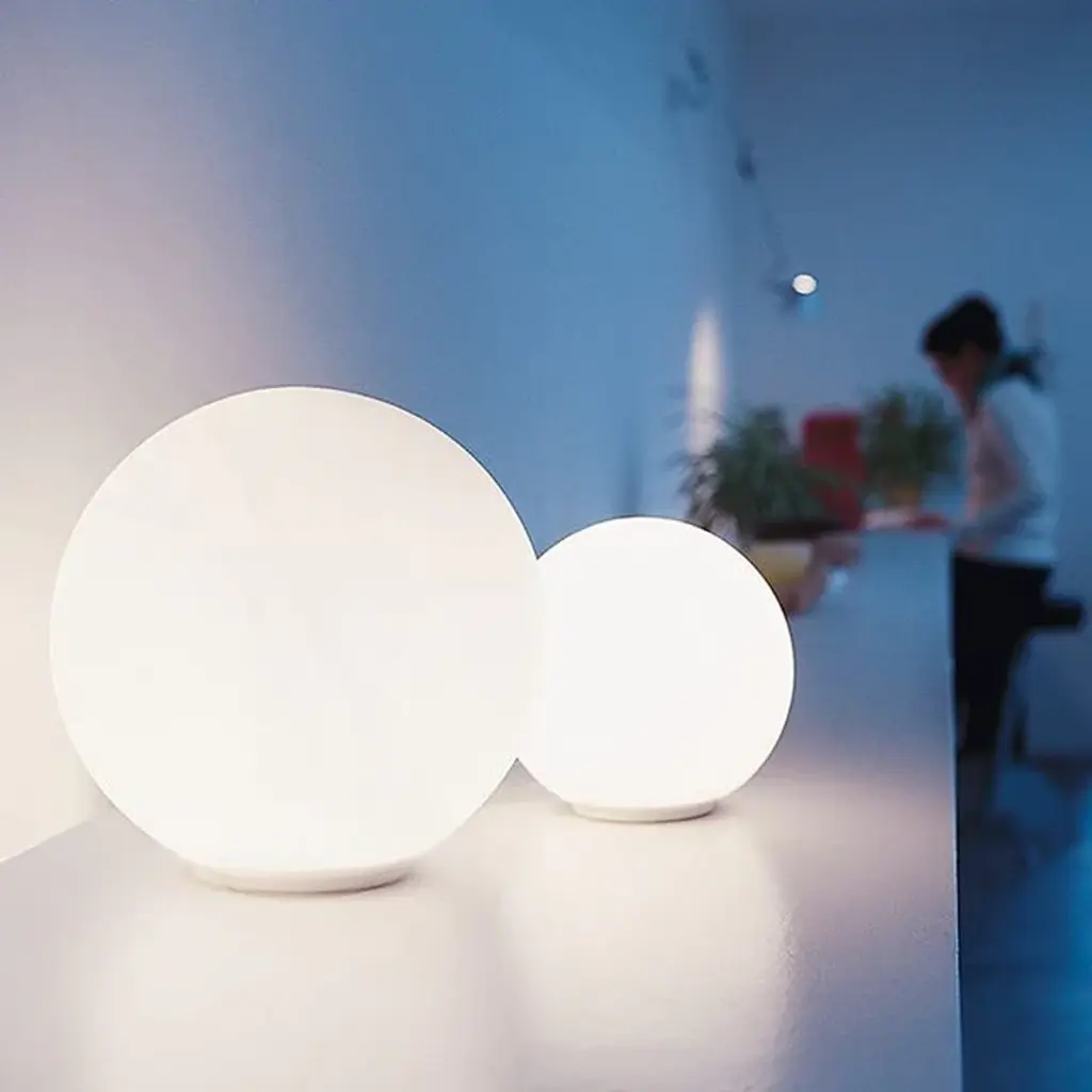 Bring a touch of ethereal radiance to your space with the Dioscuri Table Lamp from Artemide. Crafted from Italian hand-blown glass, this elegant lamp effortlessly combines modern and classical elements. Create your own dynamic arrangement with various sizes, perfect for adding a sophisticated accent to your desk, cocktail table, or entryway console. Highlights