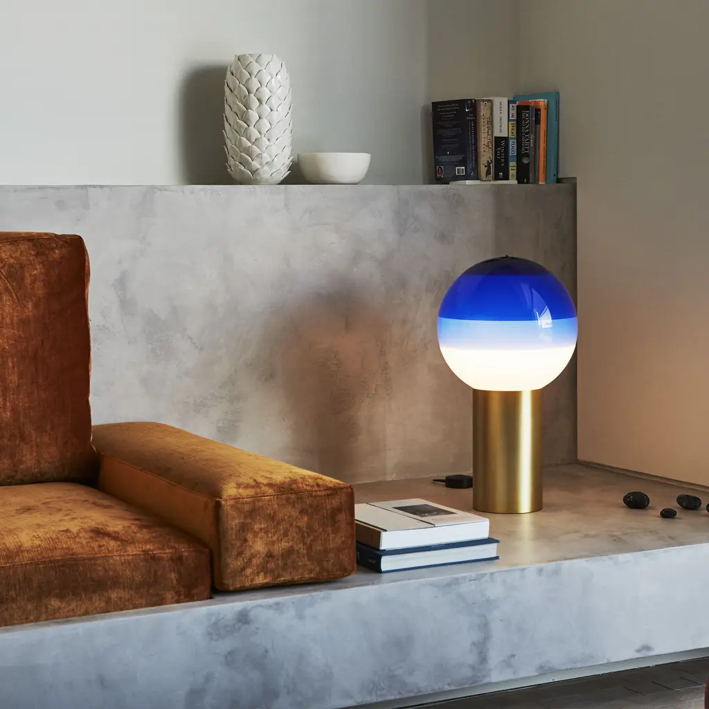 Give your world more color and excitement with the Marset Dipping Light. Designed by Jordi Canudas, the lamp explores the essence of light with an eye-catching design that will always get your guests talking. Dipped in several layers of paint, the light bulb doubles as a shade. At the same time, the hues of the concentric circles infuse the light with color and texture, changing its intensity and quality. The brass base adds a stylish touch to the lamps. Available in a smaller size that suits shelves or bedroom side tables, and a larger size that fits living rooms and more spacious areas. Colors range from warm to cool and neutral: Amber, Pink, Green Blue, White, and Black. Perfect on its own, the range of colors of the Dipping Light lamp also provides an opportunity to create different ambient lighting in a room.