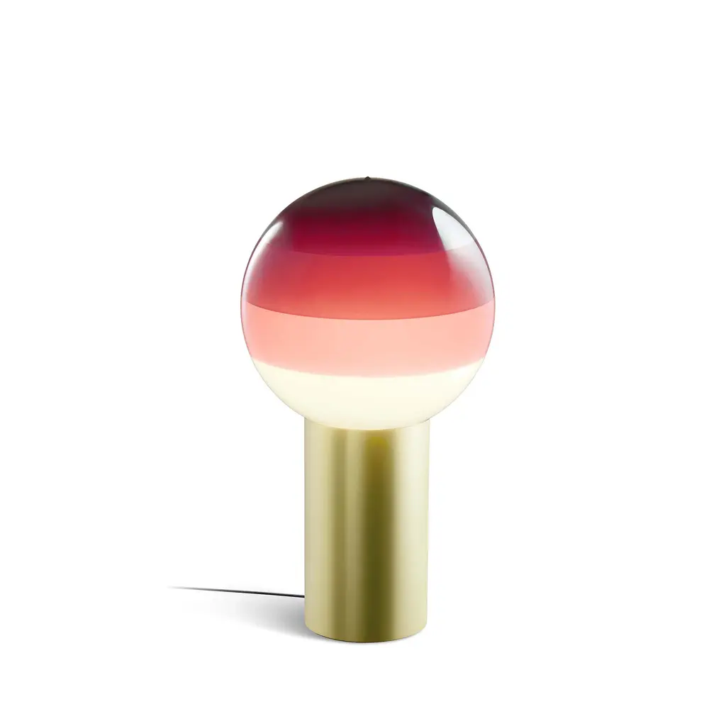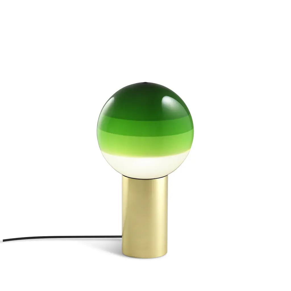 Part LED lamp, part decorative object, the Dipping Light Table Lamp from Marset stuns with handcrafted beauty. Concentric circles of paint on its blown-glass shade sift the light, creating a magical ambient effect when turned on. When off, the lamp serves as a unique statement piece with its multi-colored orb perfectly balanced atop a metallic base, ready for accenting a shelf or table. Highlights