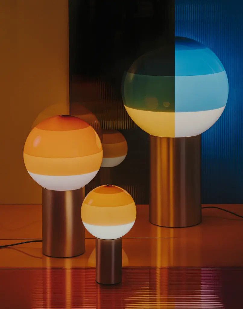 Beyond its function as a lamp, the Dipping Light seeks to excite. When it’s turned on, its different shades of paint sift the light, creating a magical ambient effect. When it’s off, its colored glass sphere is an object charged with beauty, and eye-catching design piece for a shelf, bedside, or table.