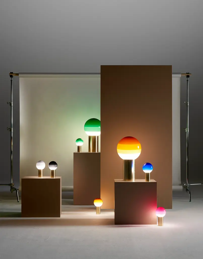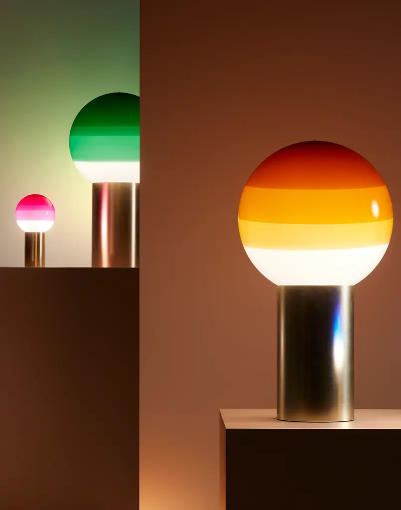Beyond its function as a lamp, the Dipping Light seeks to excite. When it’s turned on, its different shades of paint sift the light, creating a magical ambient effect. When it’s off, its colored glass sphere is an object charged with beauty, and eye-catching design piece for a shelf, bedside, or table.