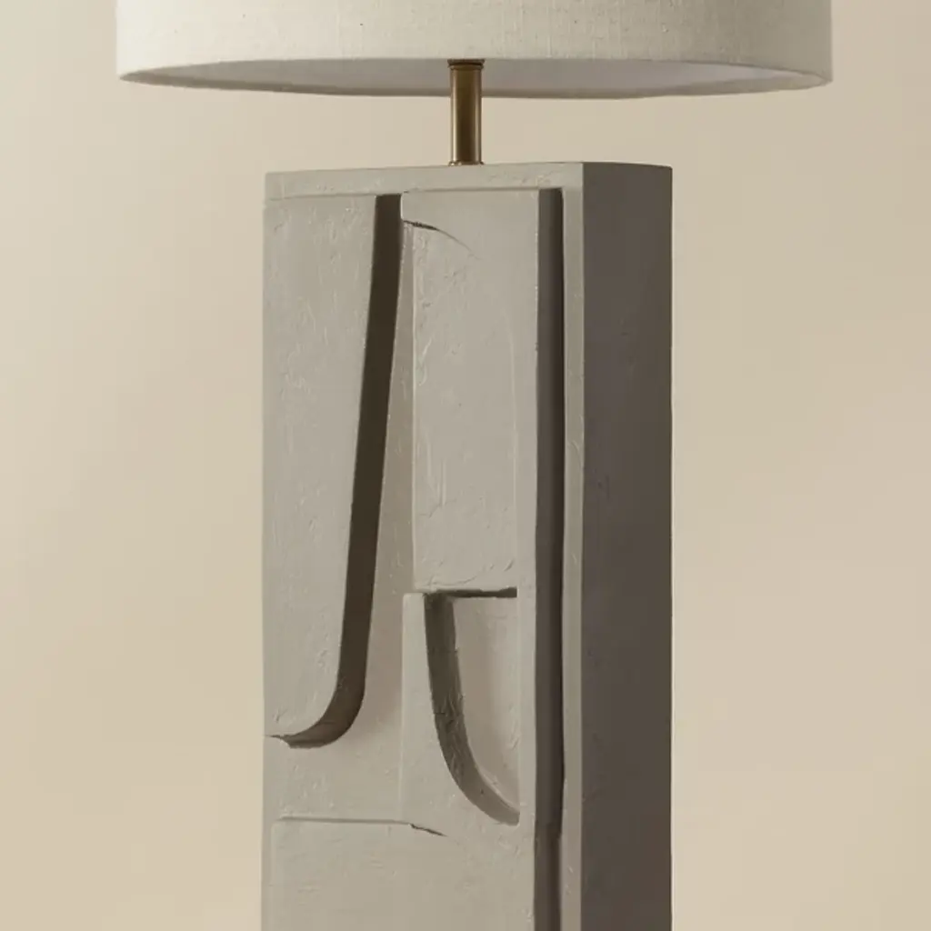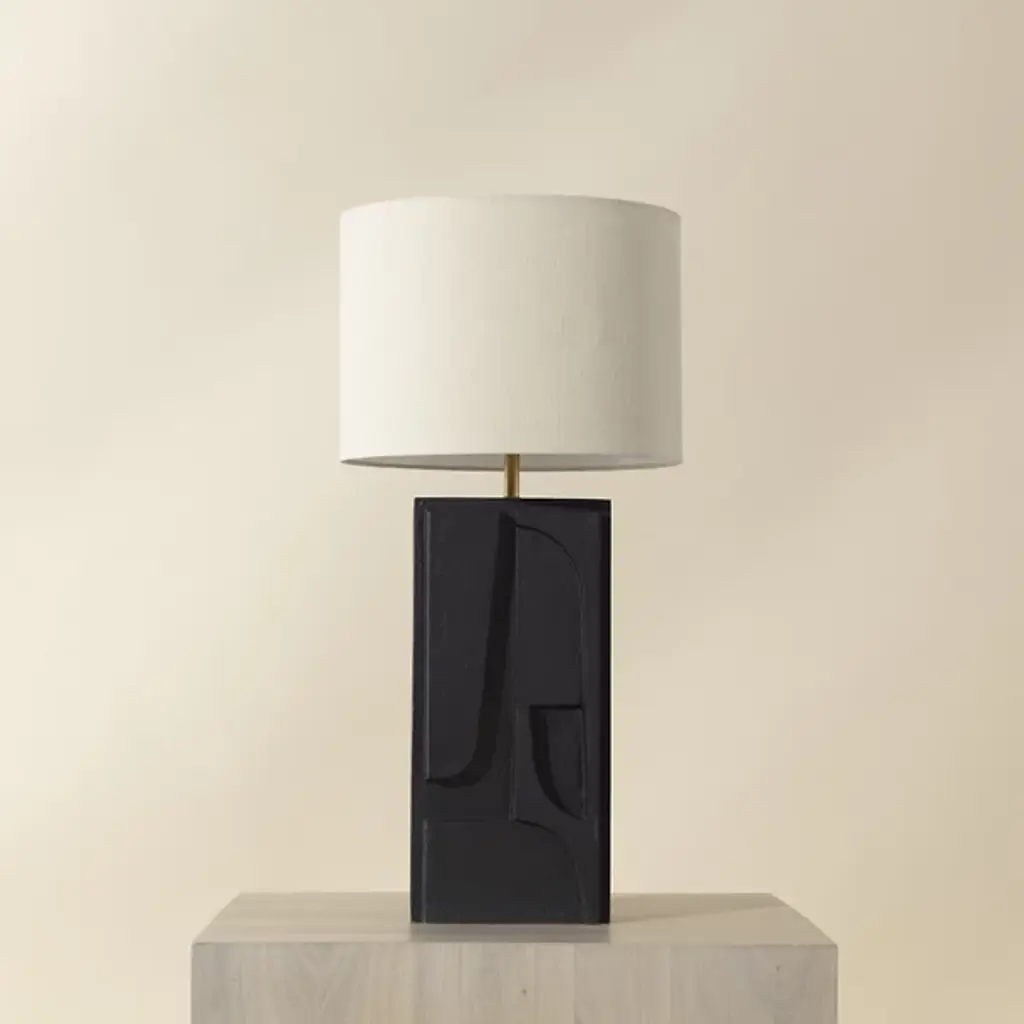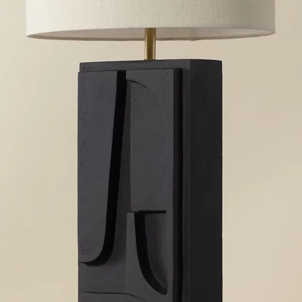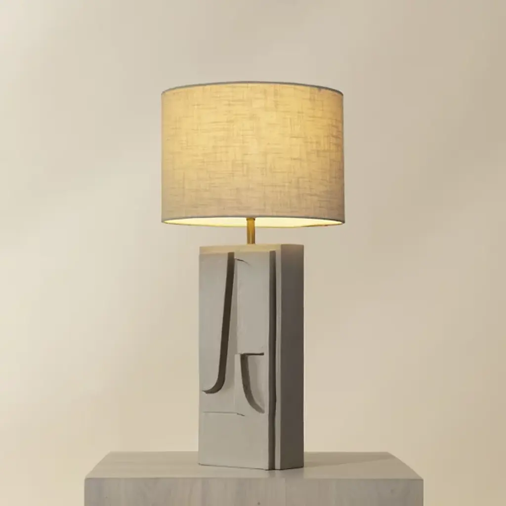 The Dirsan Table Lamp from Sunpan features abstract shapes carved into its base, giving the design a unique artistic flair. It is crafted from casted aluminum, and this lamp showcases a sculptural look that is both modern and timeless. With a subtle texture, enhancing the overall aesthetic of the piece. This lamp provides functional lighting and a stunning decorative accent, making it a perfect addition to any contemporary or eclectic space.
