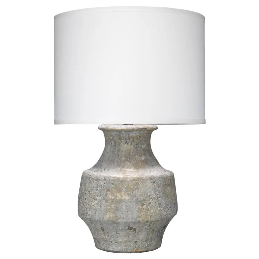 Ceramic base finished in a distressed blue glaze with sandstone undertones and dark rustic bronze details. The rectangle bell shade is a khaki linen fabric with natural slubbing. Size: 37. 5''''L X 12''''W X 18'''' Deep Weight: 16 LBS. Color/Finish: Distressed Blue Glaze Finish On A Textured Ceramic Body With Sandstone Undertones And Dark Rustic Bronze Details. Premium Materials: Linen, Poly, Steel, Ceramic Uses 1 150W Bulb (not included) UL Listed 120V Plug In Heirloom Quality - Expertly hand- crafted and hand- finished. Due to the hand- crafted nature of this item, each piece may differ slightly.
