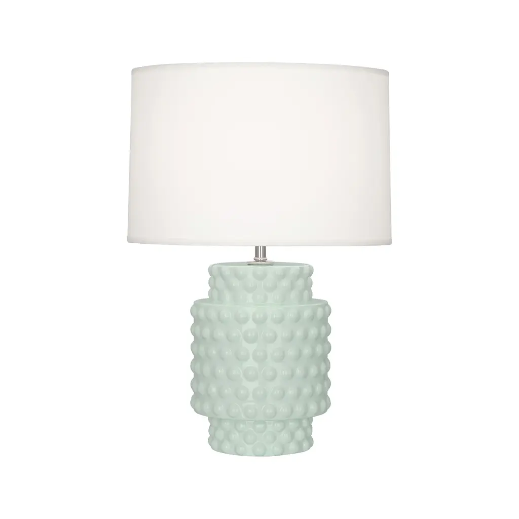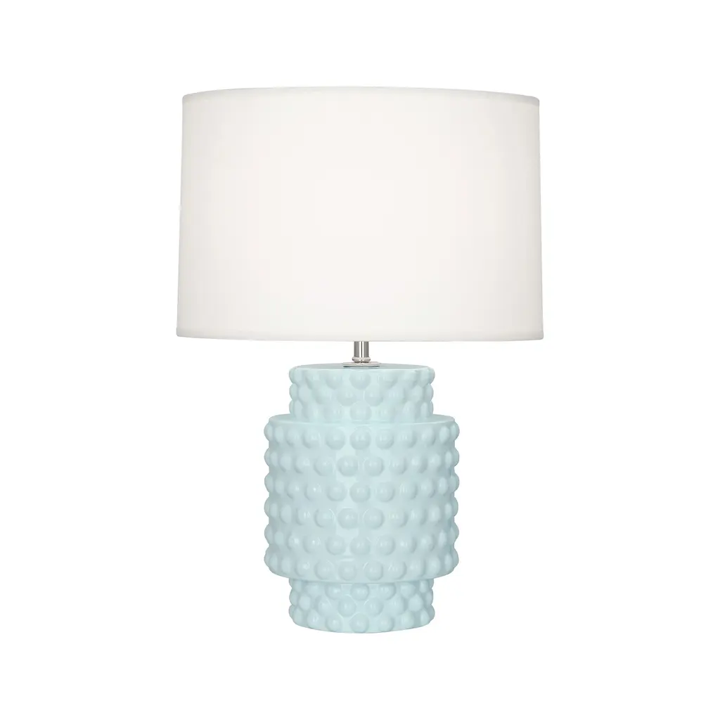 The Dolly Accent Table Lamp from Robert Abbey blends classic elements with a fresh, contemporary spirit. Its short, stout frame features simple cylindrical shapes adorned with playful bubbles, creating a unique texture that catches the eye. Paired with a Fondine fabric shade, this lamp delivers warm, focused accent lighting that adds a touch of youthful wonder and whimsy to any space. Perfect for brightening your room with style and charm. Highlights