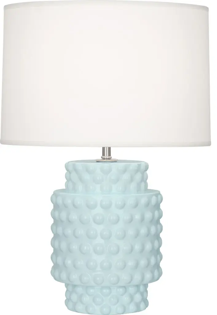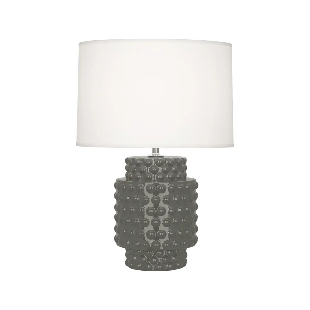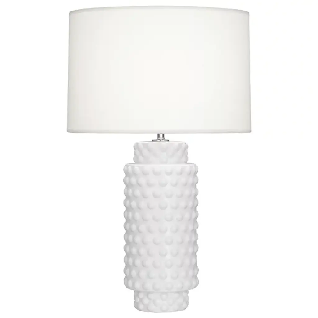 The Dolly Accent Table Lamp from Robert Abbey blends classic elements with a fresh, contemporary spirit. Its short, stout frame features simple cylindrical shapes adorned with playful bubbles, creating a unique texture that catches the eye. Paired with a Fondine fabric shade, this lamp delivers warm, focused accent lighting that adds a touch of youthful wonder and whimsy to any space. Perfect for brightening your room with style and charm. Highlights