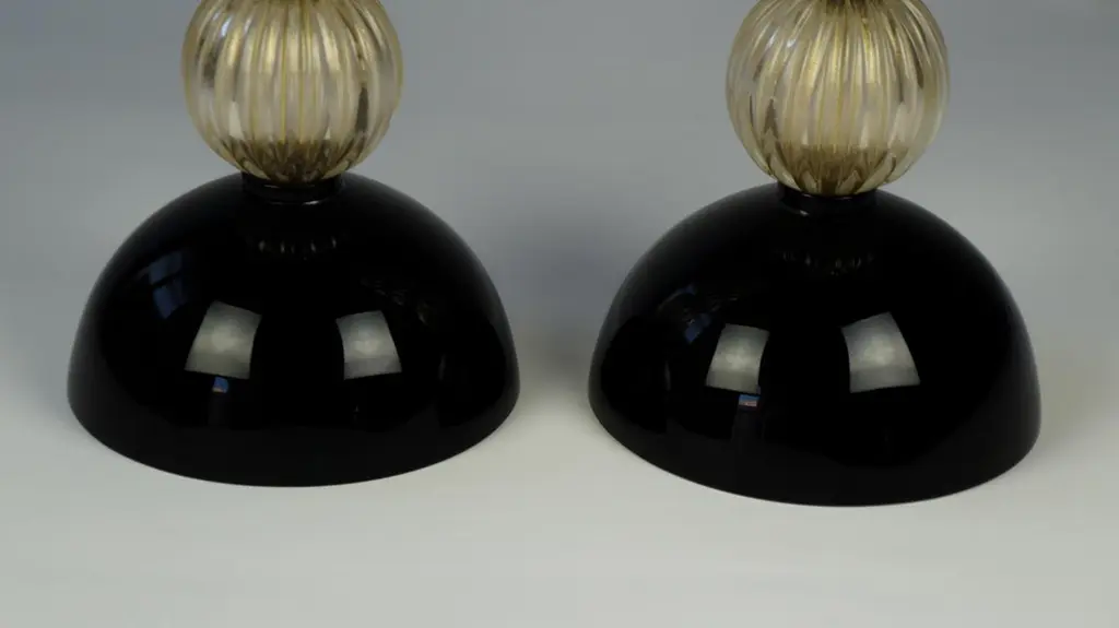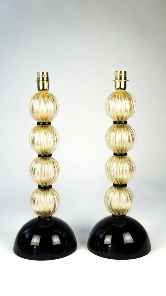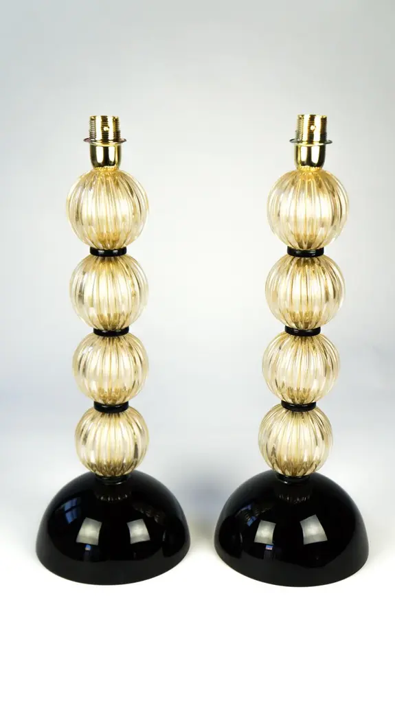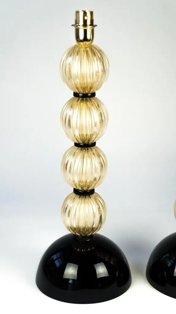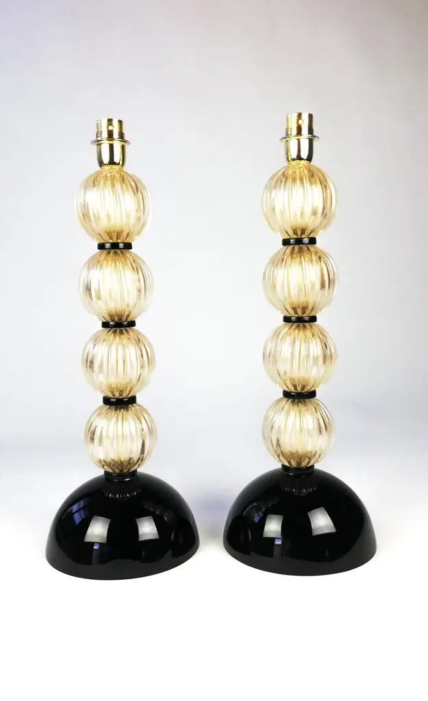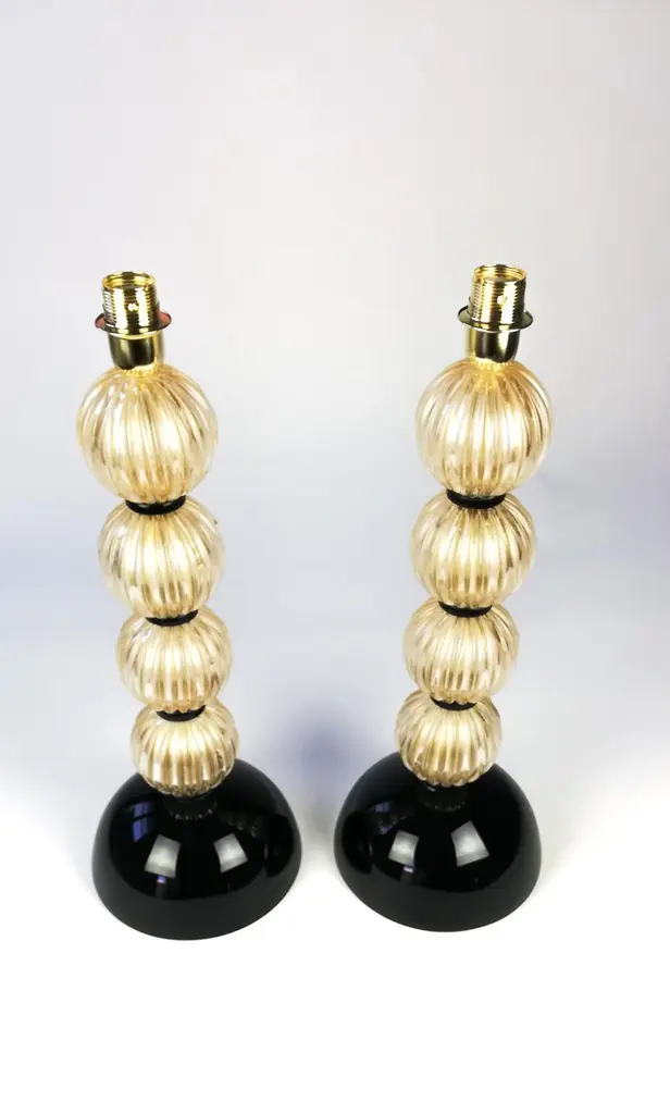 Donà Furnace Mid-Century Modern Gold Black Two Of Murano Glass Table Lamps, 1985
