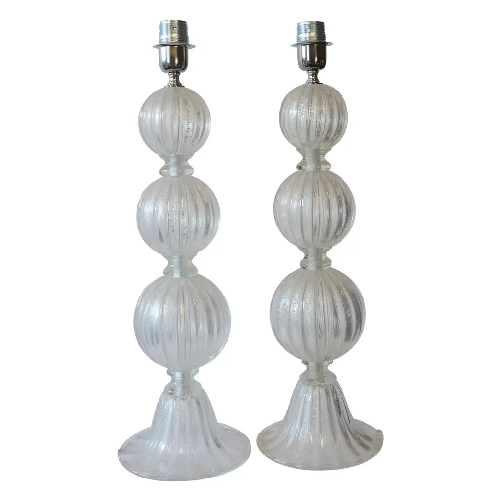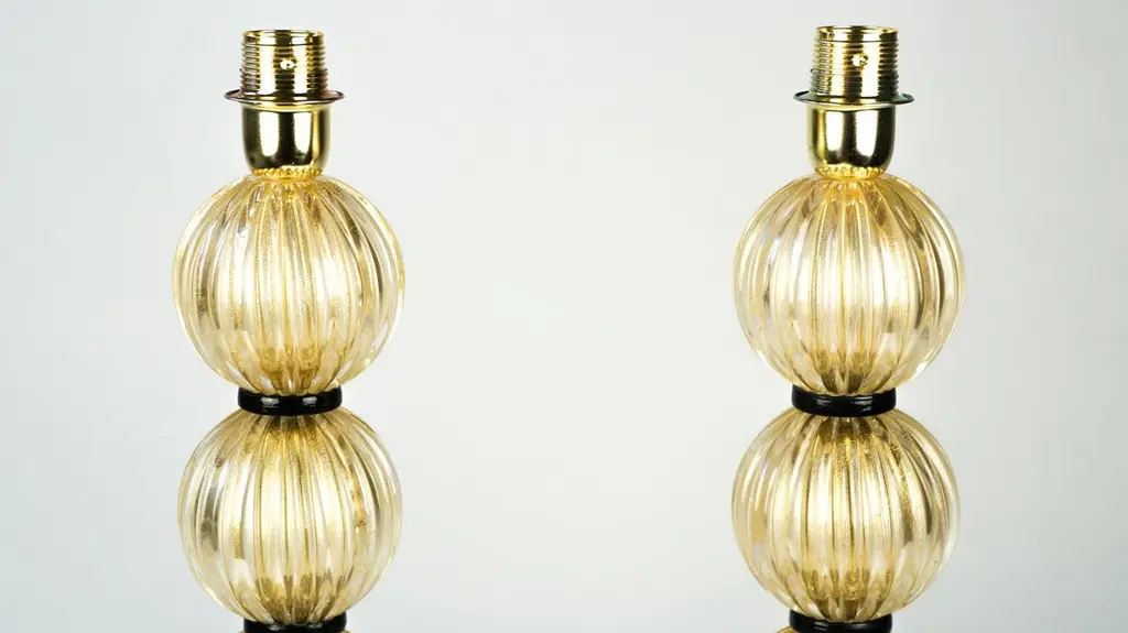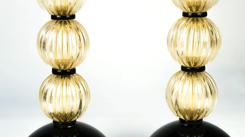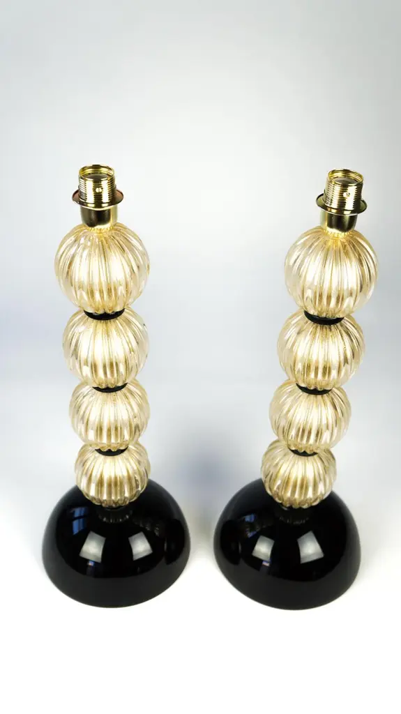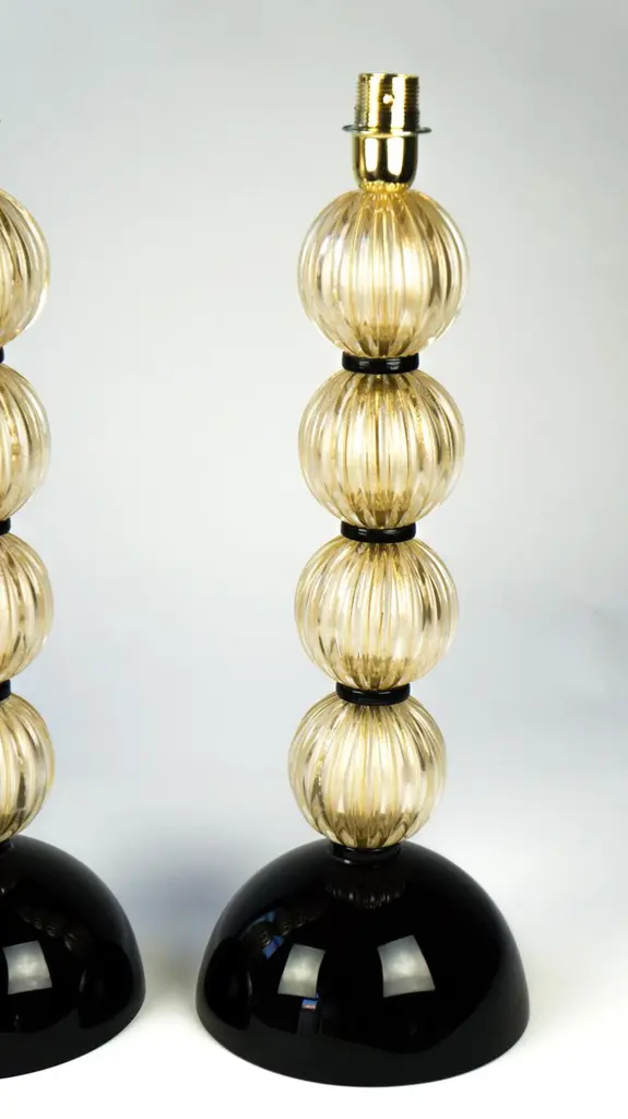 Donà Furnace Mid-Century Modern Gold Black Two Of Murano Glass Table Lamps, 1985