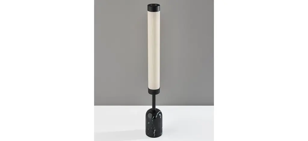 The Dorsey Table Lamp combines a rich mix of materials, rounded contemporary design, and LED energy efficiency for the perfect accent lighting for your space. The slim lamp features a domed base in marble. A short pole supports a cylindrical textured cotton shade. Both economical and versatile, the integrated 12W eco-friendly LED produces up to 600 lumens to brighten your space. Operated by a touch switch conveniently located on the top of the light shade, the lamp projects light with three brightness settings and three color temperature settings all controlled by the touch of a finger. The lamp is also powered by a 5' cord.