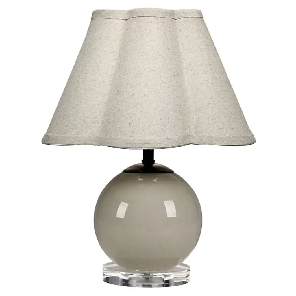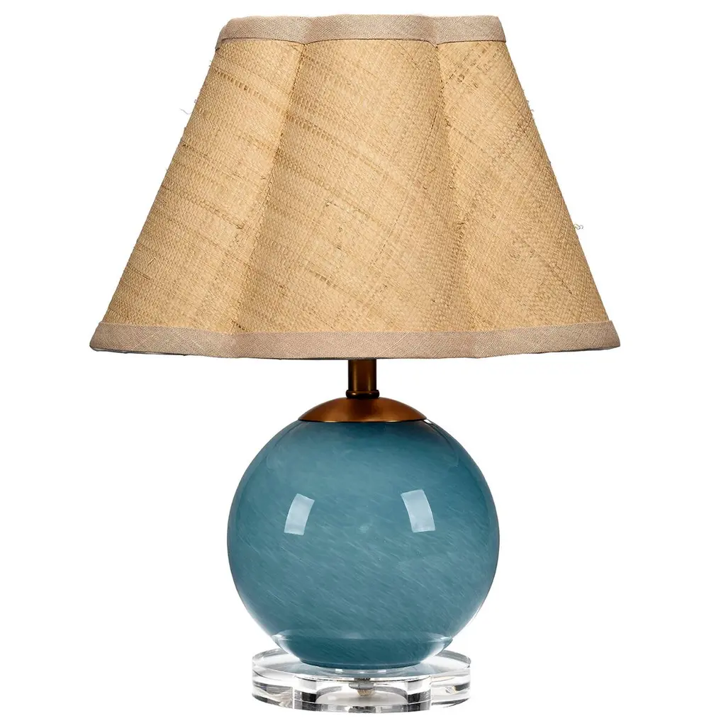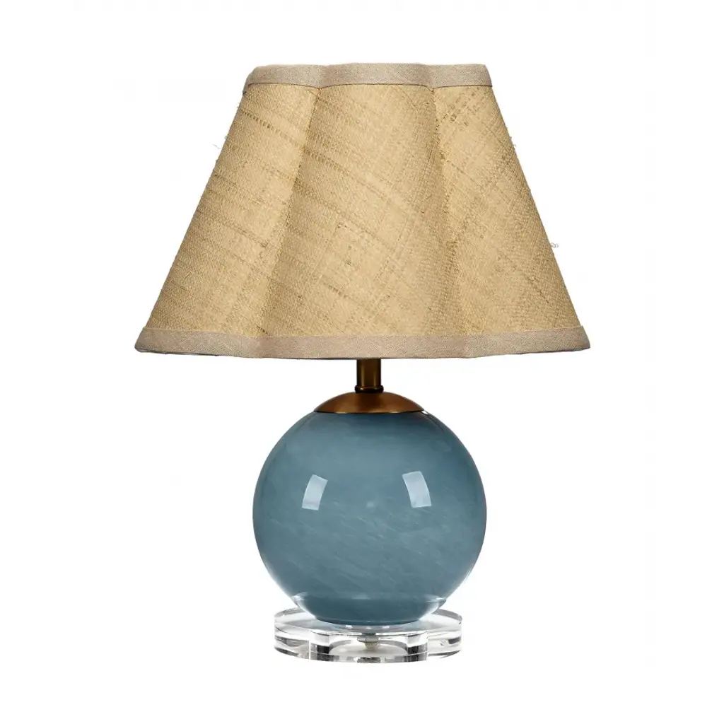 The Dottie Table Lamp from Jamie Young Co. is a whimsical celebration of form and light. Crafted from hand-blown glass, its spherical base sits atop a crystal-clear acrylic disc, creating an illusion of ethereal weightlessness. The lamp's playful silhouette is complemented by a softly scalloped raffia shade. This charming fixture proves that functional lighting can also be fun, making it an ideal accent for bedside tables, nurseries, or any corner that could use a dose of quaintness and light.