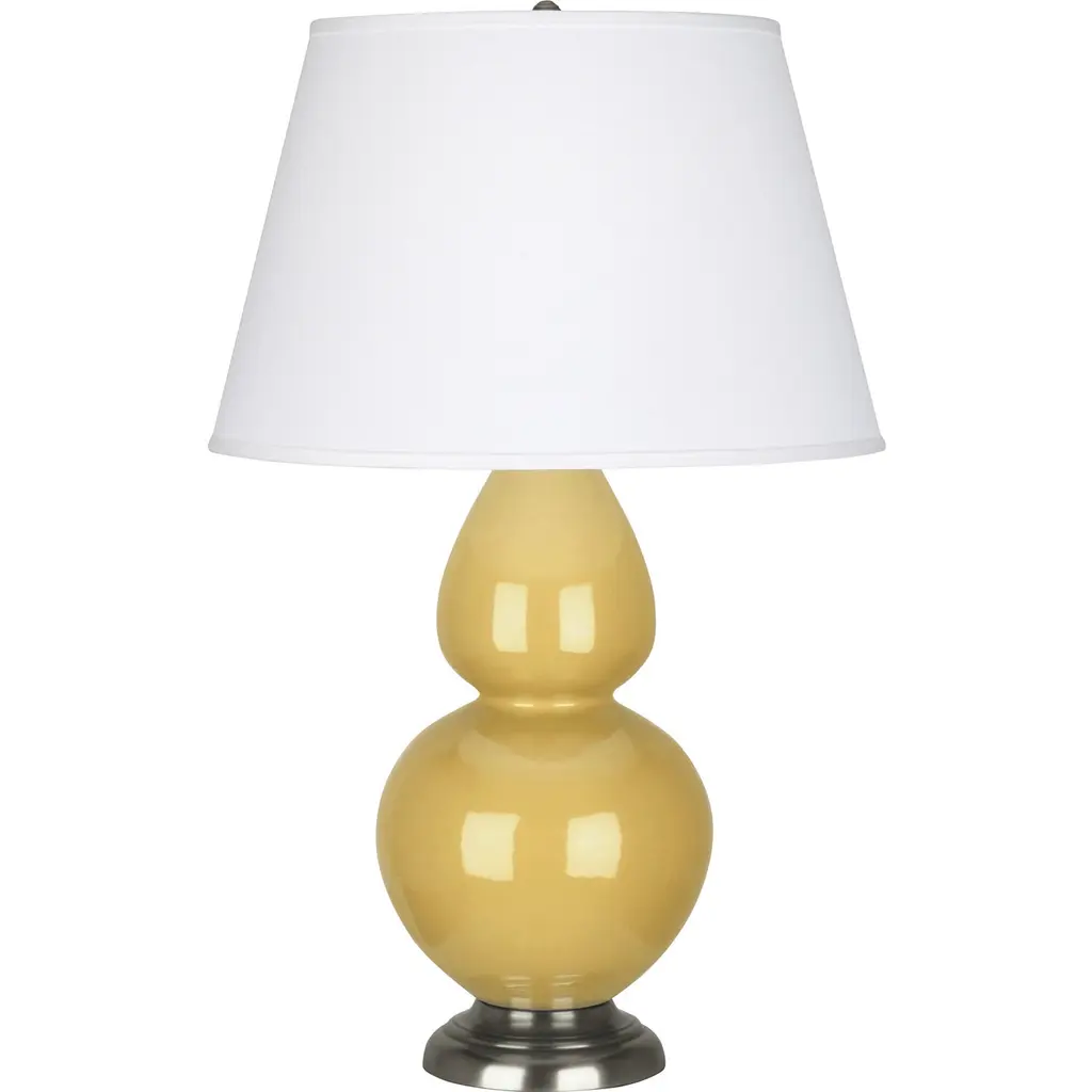 Cobalt Glazed Ceramic With Antique Silver Finished Accents Double Gourd Table Lamp With Pearl Dupioni Fabric Shade - Our Double Gourd collection features a simple but gracefully curving silhouette. Available in a wide array of vibrant colors and several different base finishes.
