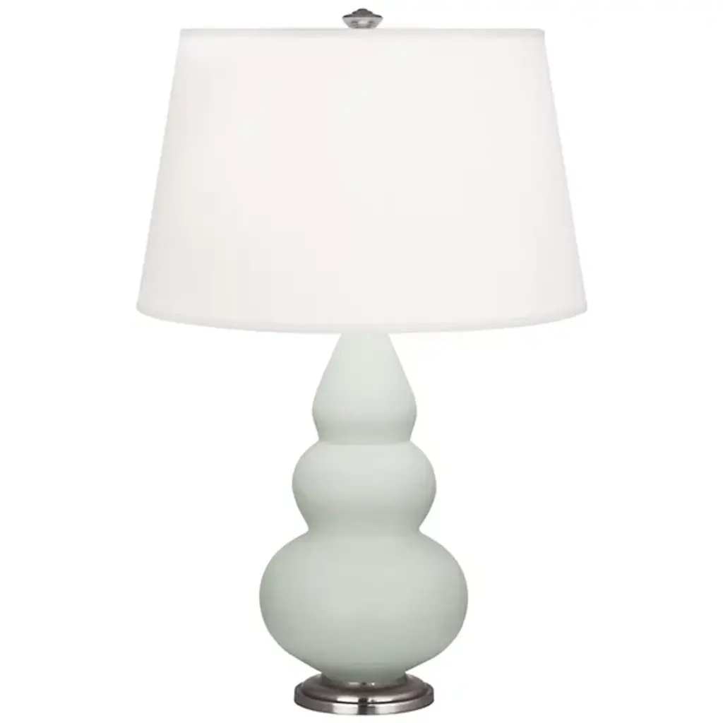 The Double Gourd Accent Table Lamp by Robert Abbey adds a charming touch to your home with clean, classically styled elements that result in an elegant, contemporary piece. A tapered, fabric shade is dressed up with a simple finial detail and sits on top of a smooth, ceramic lamp base. This shapely and beautifully glazed piece brings an even and welcoming layer of illumination to spaces throughout the home while effortlessly complementing a variety of décor styles.