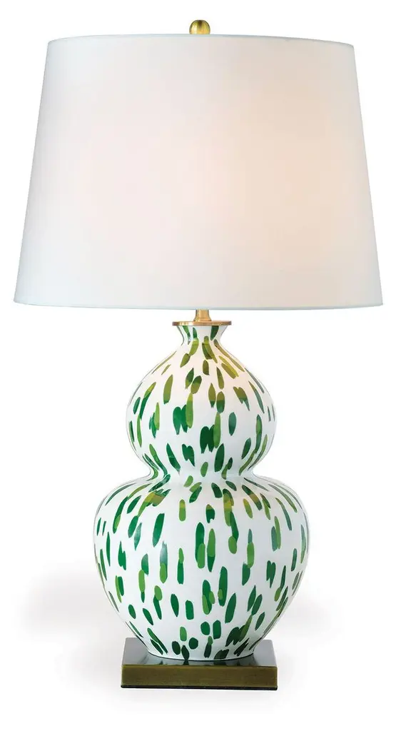 The Double Gourd Table Lamp by Robert Abbey is a simple and classically-styled addition to your home. With a tapered, rounded, ceramic base that has a beautiful glazed finish, this table lamp is topped with a stretched fabric shade that diffuses an even layer of light onto surroundings. Complemented with a minimal metal finial and smooth base, this fixture adds a tailored and lovely touch to the rooms it brightens, working with a variety of design styles to complete a space.