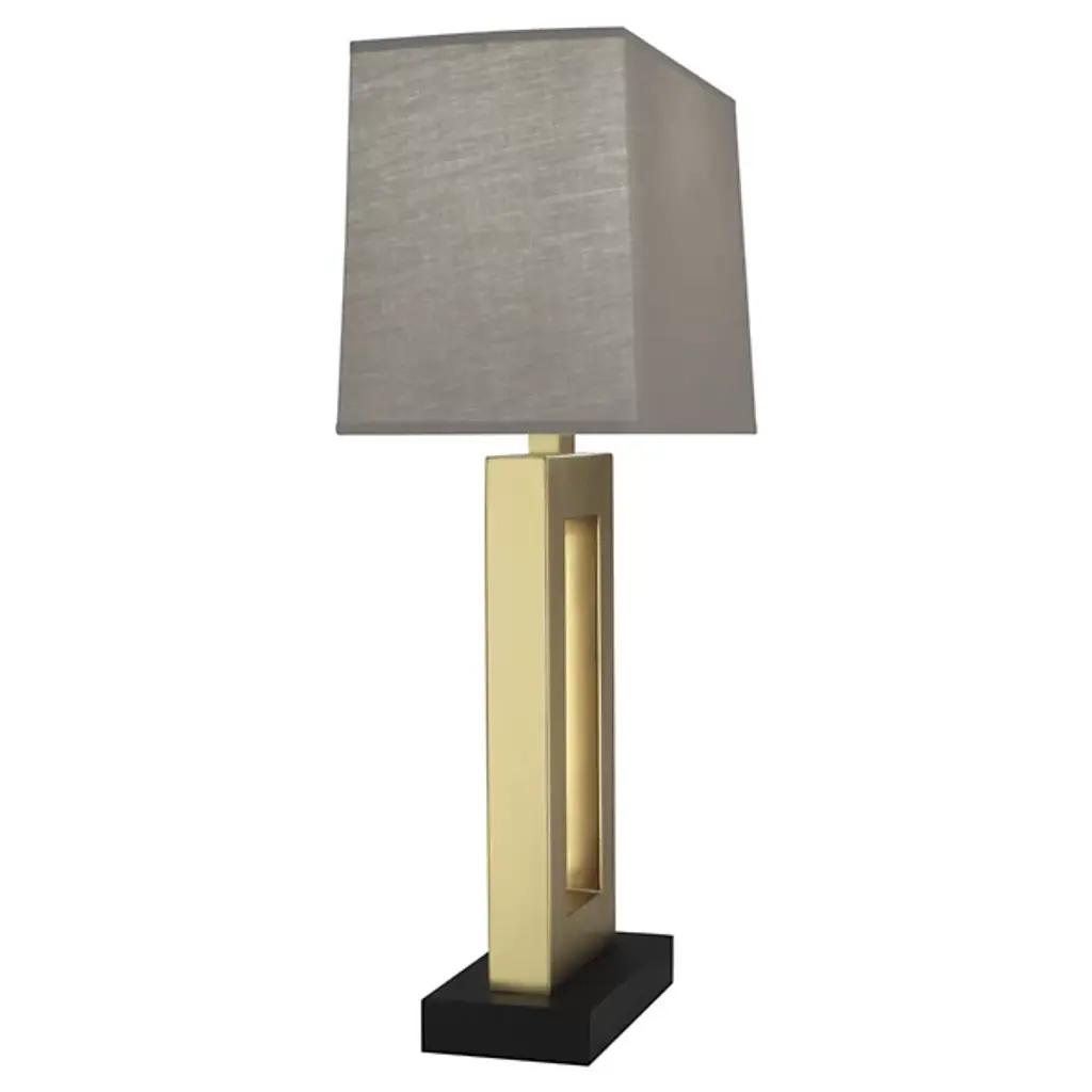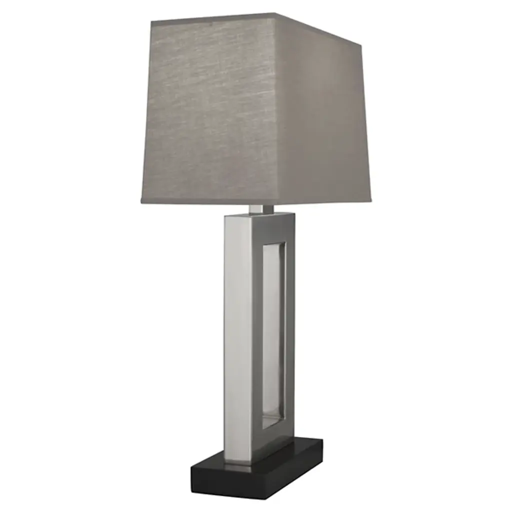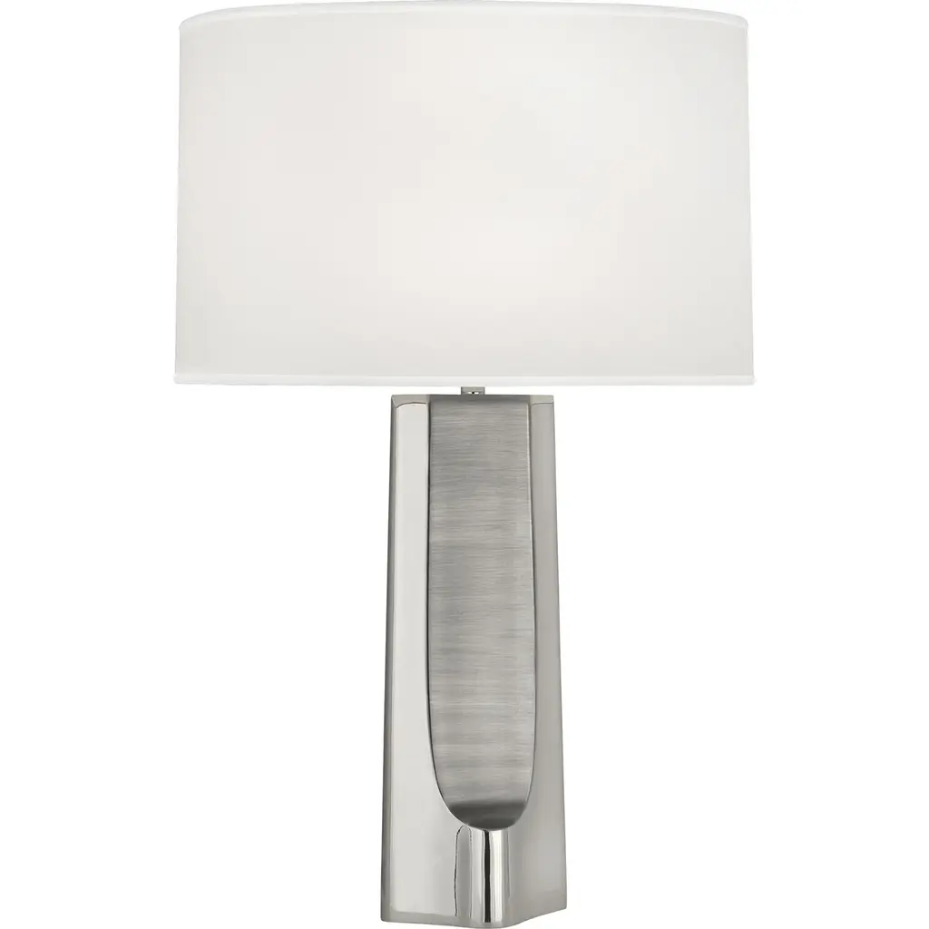 Compact, stocky and full of delectable style, the Doughnut Table Lamp by Robert Abbey will provide a sugary rush of delight to whatever table it’s placed upon. Its Metal frame is shaped like a rectangle, hollowed out with a rectangular hole that makes the piece look like an exceptionally long donut. The frame can be covered in several Metallic finishes, offering some visual variety to contrast with the simplicity of the piece’s Snowflake Fabric shade.