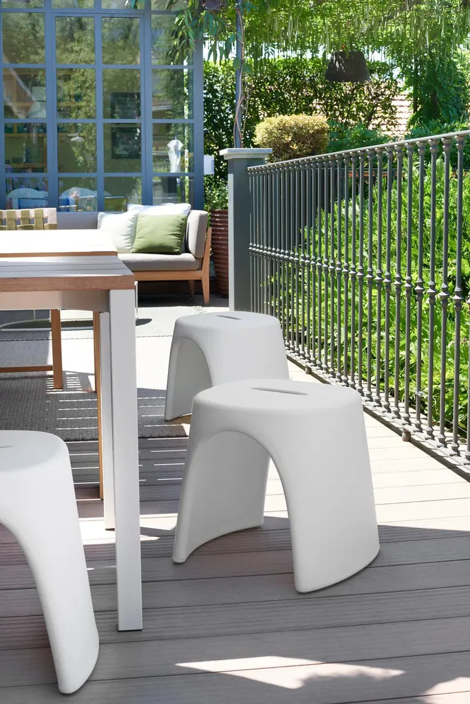 Dove Grey Amélie Sgabello Stool by Italo PertichiniDimensions: D 40 x W 46 x H 43 cm.Materials: Polyethylene.Weight: 4 kg.Available in a standard version and lacquered version. Prices may vary. Available in different color options. This product is suitable for indoor and outdoor use. Stackable product. Please contact us. Amélie Sgabello is a product that belongs to the Amélie collection. The stool is stackable and it has got fluid and essential design, as the whole Amélie collection. The stool is a beautiful design product but it is also a functional object, which can solve space-related problems. The versatile and stackable stool is suitable for domestic settings, such as living rooms and gardens, but also for contracts and events, both indoor and outdoor.Our stories happen in places precious to us. SLIDE was born from the desire to produce furniture and light to create the perfect atmosphere that highlights emotions.Design is inspiration, surprise, joy. It's the amazement of seeing something unique for the first time. It's creating spaces to feel good and live surrounded by beauty. It means giving a personal imprint to indoor and outdoor spaces. It means choosing your ideal element that is the perfect setting for emotions and experiences, which become indelible memories. The founder Giò Colonna Romano knows this well, combining his fervent imagination with thirty years of know-how in the processing of plastic resins, giving birth to SLIDE in 2002. The first note of amazement is the luminous furniture, which immediately became a must have in the world of events. Since 2015, his son Marco Colonna Romano has taken over the reins of the company, with the same desire to grow and innovate as his father. Thanks to a new panache and the team of young people it surrounds itself with, SLIDE becomes a beloved company for outdoor furniture: new shapes, materials and tactile textures have won the hearts and ideas of architects and interior designers around the world. SLIDE has thus created complete collections and furnishings, with new shapes, whose lines arise from collaboration with internationally renowned designers of the caliber of Alessandro Mendini, Paola Navone, Stefano Giovannoni, Fabio Novembre, Marcel Wanders, Karim Rashid, Marc Sadler, Francesco Favaretto and Marcantonio.New materials were chosen and inserted, initially soft and rigid polyurethane, and then comfortable cushions, waterproof fabrics, tactile textures ideal for completing the polyethylene furnishings with taste and class. But SLIDE does not forget its first essence, lighting: in recent years it has developed a line of much more technical lamps for large areas, essential in shape but with great visual impact. For the first time, Slide has managed to give an artisanal twist to an industrial process: to meet the increasingly high demands of living, the production creates non-replicable shades, in which every small imperfection enhances the industrial process and makes each piece unique . Because Slide's strength has always been the careful reading of the market, the creation of something that didn't exist and which then became necessary: here Slide continues its production in Buccinasco, on the outskirts of Milan, but its name and its products reach more than 130 countries around the world.